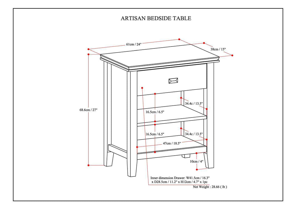 - Features one (1) spacious drawer with sturdy ball-bearing metal drawer glides for smoother drawer movement and an open bottom storage area with one (1) shelf