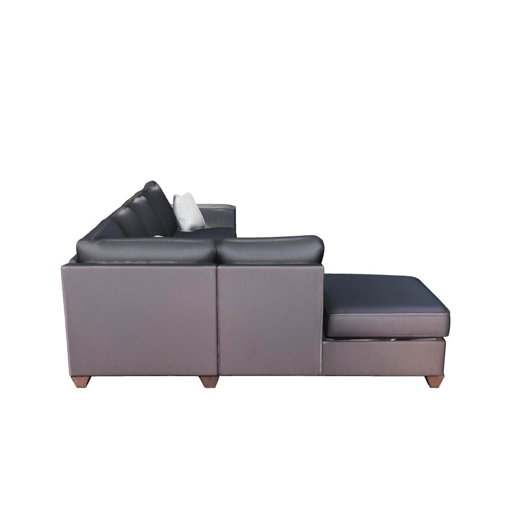 If style is the question, then this sectional is the answer. Sporting clean lines and sleek track arms, the decidedly contemporary profile is enhanced with plump cushioning and a chenille-feel upholstery, so pleasing to the touch. Sure to play well with so many color schemes, this sectional in slate gray includes a pair of understated floral pattern pillows for fashionably fresh appeal.