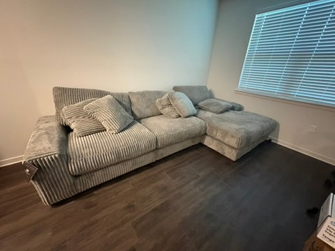 Plush and posh. Showcase your eye for on-trend texture with the statement-making cord upholstery of this sectional. Its stunningly soft fabric entices in a warm neutral hue, complementing contemporary color palettes. Sink into the cushions and plan to stay a while—this cozy living room centerpiece highlights your high-end approach to comfort and style.
