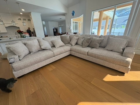 If you love the idea of contemporary style that’s ultra warm and inviting, this sectional is casual refinement you’ll look forward to living with. Lightening things up in a fresh neutral tone, this sectional is covered in a decadently soft microfiber. Rest assured, ultra-deep seats and reversible cushions you can flip and fluff nicely accommodate, while clean-lined styling and wide track arms make a fashion statement.