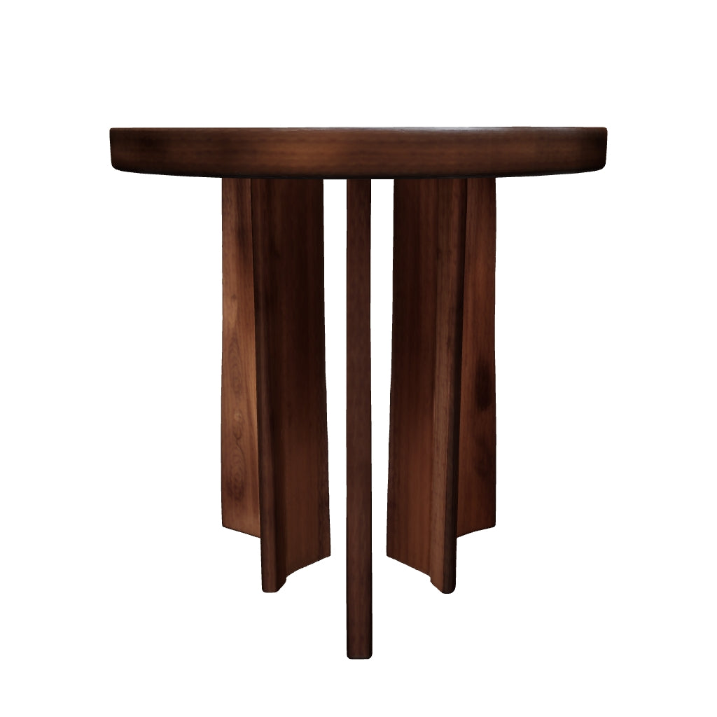 Showcasing an elevated, artistic silhouette, this end table expertly blends modern form and function. Its warm brown finish highlights the stunning wood grain, bringing an earthy element to staging a sofa-side lamp or other decor. Complete with a thick, substantial top, it’s a naturally beautiful living room staple in the making.