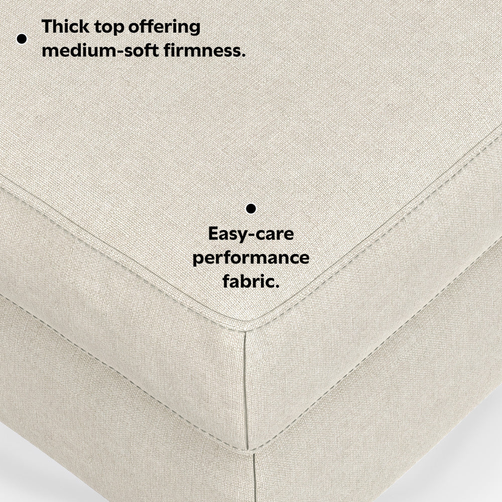 - Upholstered in Cream Performance Fabric, a soft yet durable, easy-care fabric made with 100% recycled polyester and protected with water-repellent and fire-resistant coatings; this eco-friendly fabric meets the Global Recycled Standard and OEKO-TEX® STANDARD 100.