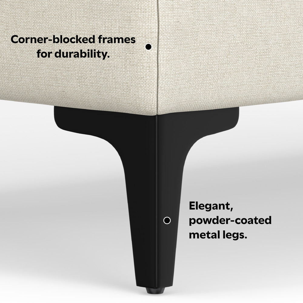 - Sturdy, corner-blocked frame made with solid and engineered woods includes high-resilience webbing and high-gauge sinuous springs to prevent sagging, and powder-coated metal legs in a black finish.