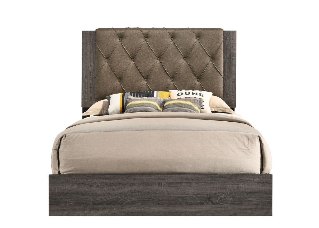 - 4 Slats Box Spring Required, Panel Bed: Rectangular HB/FB (Low Profile FB)•Padded Bed HB: Fabric, Button Tufted, Wooden Frame, CONSTRUCTION] Wood Frame: Wood, Veneer (Foil), Fabric, PB, HB w/KD Leg (35'H)
