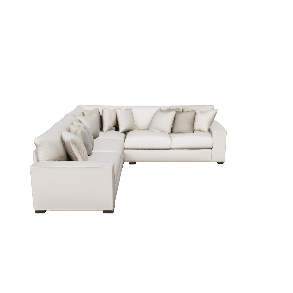 Reminiscent of a fine, subtly patterned herringbone jacket, this casually elegant sectional offers contemporary style in spades. A distinctive curved shape provides plenty of leg room, while soft feather-blend cushions maximize relaxation. Why skimp on comfort and style? With this sectional, you have space to lounge solo or hang out with friends and family.