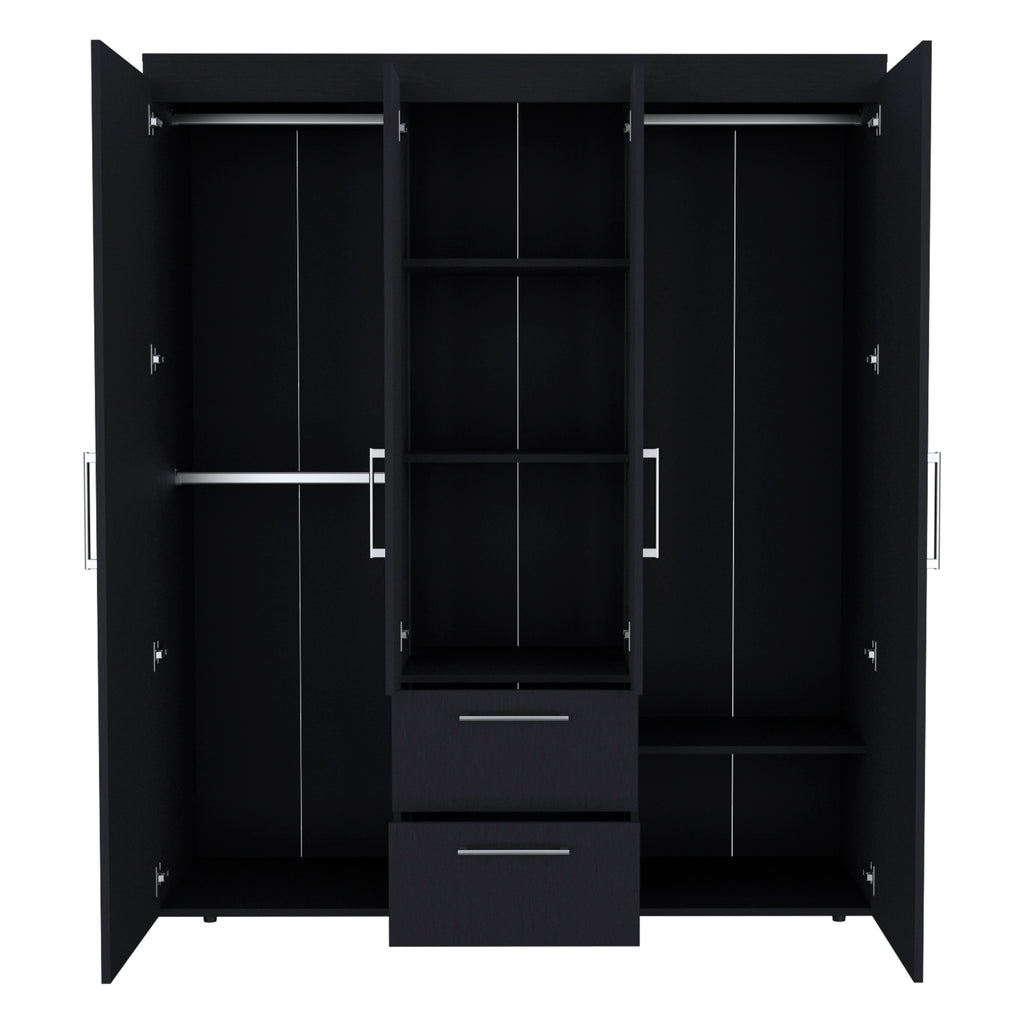 - Ample Side Compartments: Each side door opens to a 19'W X 70'H space, complete with hanging rods for extensive wardrobe organization.