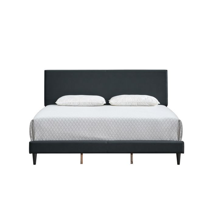 - Striking Black faux leather upholstery delivers a modern look and a soft, comfortable surface.