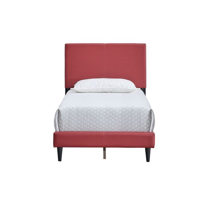 Elevate your space with this striking Red Faux Leather Twin Upholstered Bed, delivering modern style and luxurious comfort. Enjoy a hassle-free setup with supportive slats that eliminate the need for a box spring, perfect for smaller rooms. Customize your sleep sanctuary with an adjustable headboard and versatile mattress compatibility, ensuring ultimate adaptability and a chic focal point.