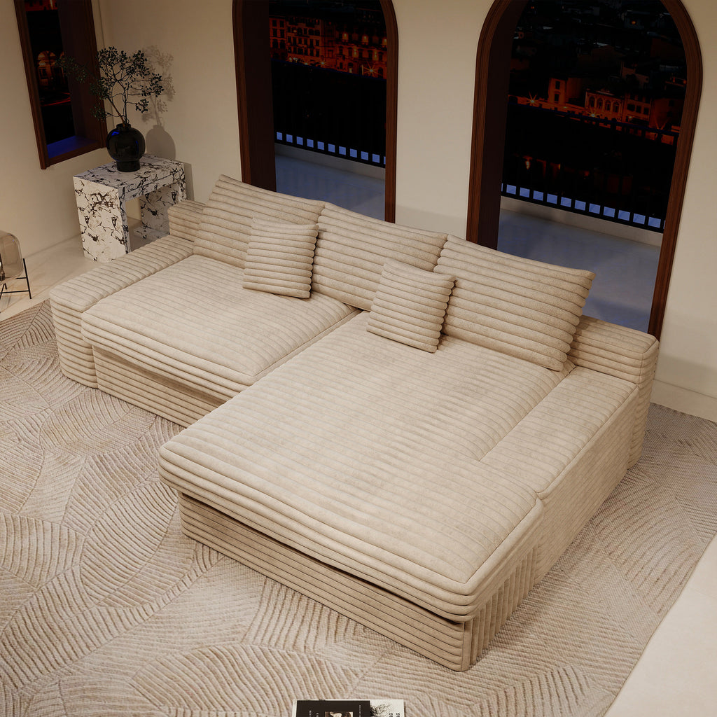 - Modular Sectional Sofa:This sectional sofa featuring a sleek design, clean lines, and high-quality plush corduroy Fabric,This sectional set maximizes space when placed against a wall,this corner sofa effortlessly adds a timeless and sophisticated touch to your home. Designed to be the focal point of attention, it's an ideal choice for elevating the ambiance of living rooms, apartments, and bedrooms.
