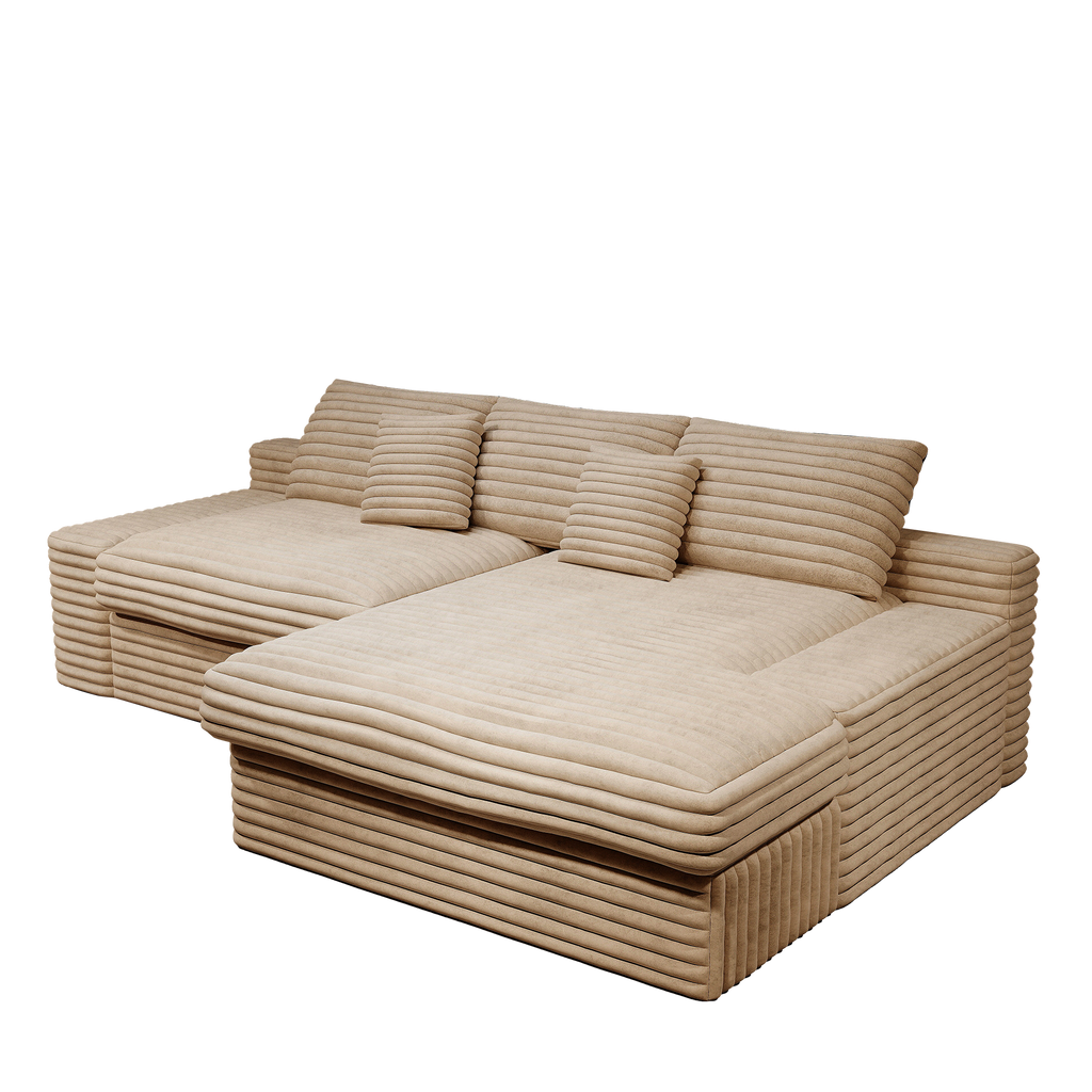 - Comfortable Chaise Lounge Couch:Indulge in luxurious comfort with our reversible sofa set, offering expansive cloud-like seating.Delight in sublime relaxation with our sleeper sofa featuring a chaise, meticulously crafted with a high-resilience sponge structure and spring pack support.Experience seating that contours to your body, surpassing the comfort of traditional sofas.