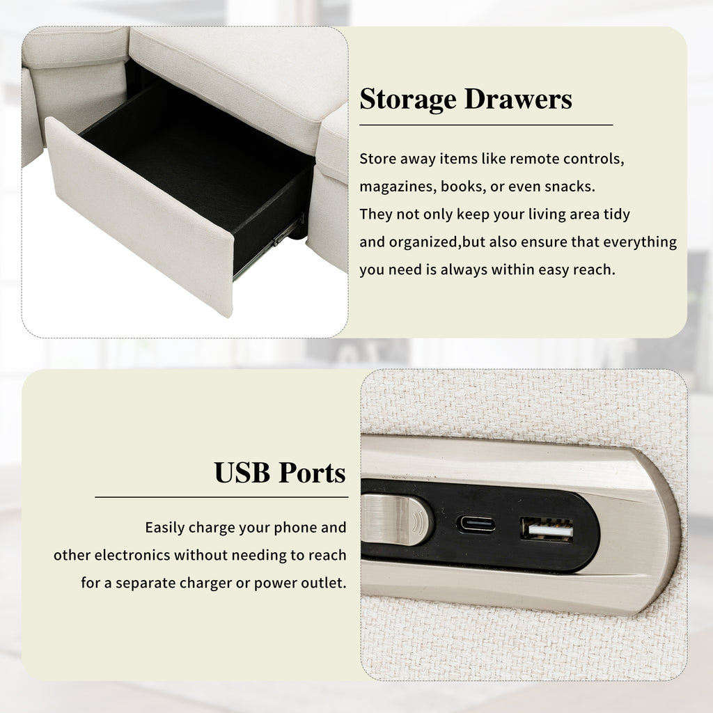 - Two USB Ports - The sofa is equipped with built-in USB ports, offering a convenient solution for keeping your devices powered up while you relax. With these ports, you can easily charge your phone, tablet, or other electronics without needing to reach for a separate charger or power outlet. This feature adds a layer of functionality to your seating area, ensuring you stay connected and charged up without disrupting your comfort.
