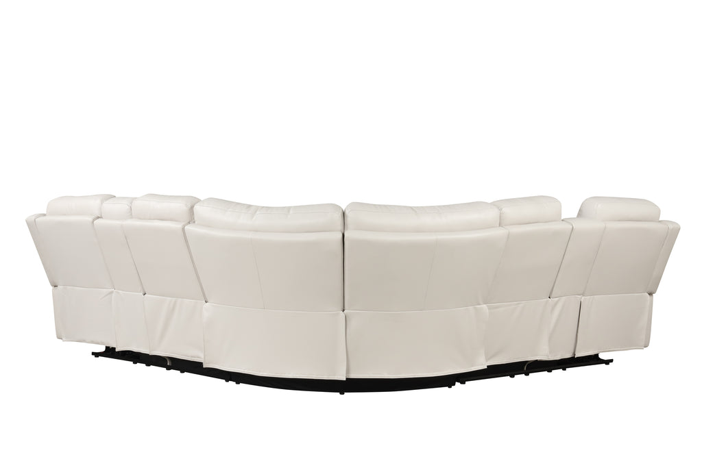 Experience luxury and advanced comfort with this power reclining sectional, perfect for elevating your home entertainment and relaxation experience. Crafted with plush cushioning and premium faux leather upholstery, this sectional offers a soft yet supportive feel, ensuring exceptional comfort during long hours of sitting or reclining. The dual power recliners allow you to find the perfect position at the touch of a button, while the integrated LED lighting adds a sleek, modern ambiance to your living space. Equipped with built-in Bluetooth speakers, this sectional lets you enjoy immersive sound, making movie nights or music sessions more engaging. The center console provides convenient storage and cup holders, keeping your essentials within arm’s reach, and USB and aux ports offer seamless connectivity for your devices.