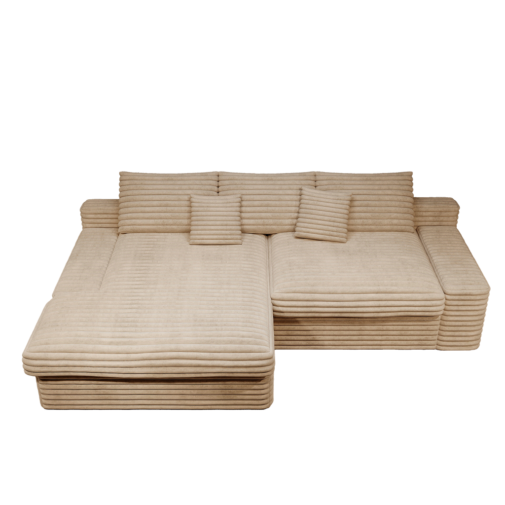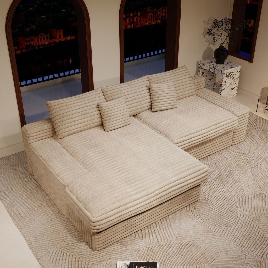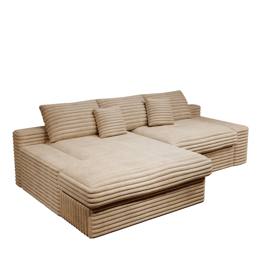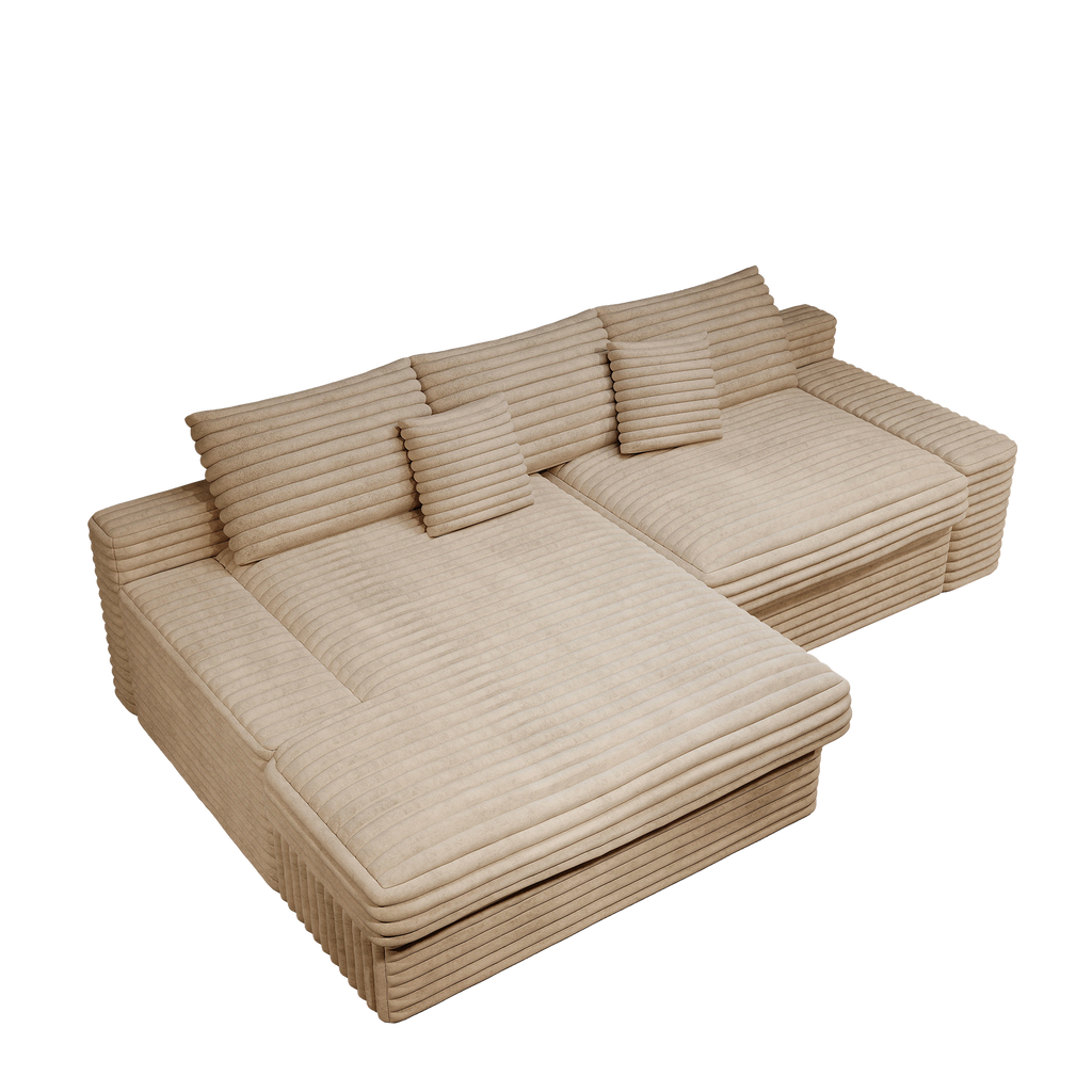 Beige Plush Corduroy Modular Sectional Sofa No Assembly
