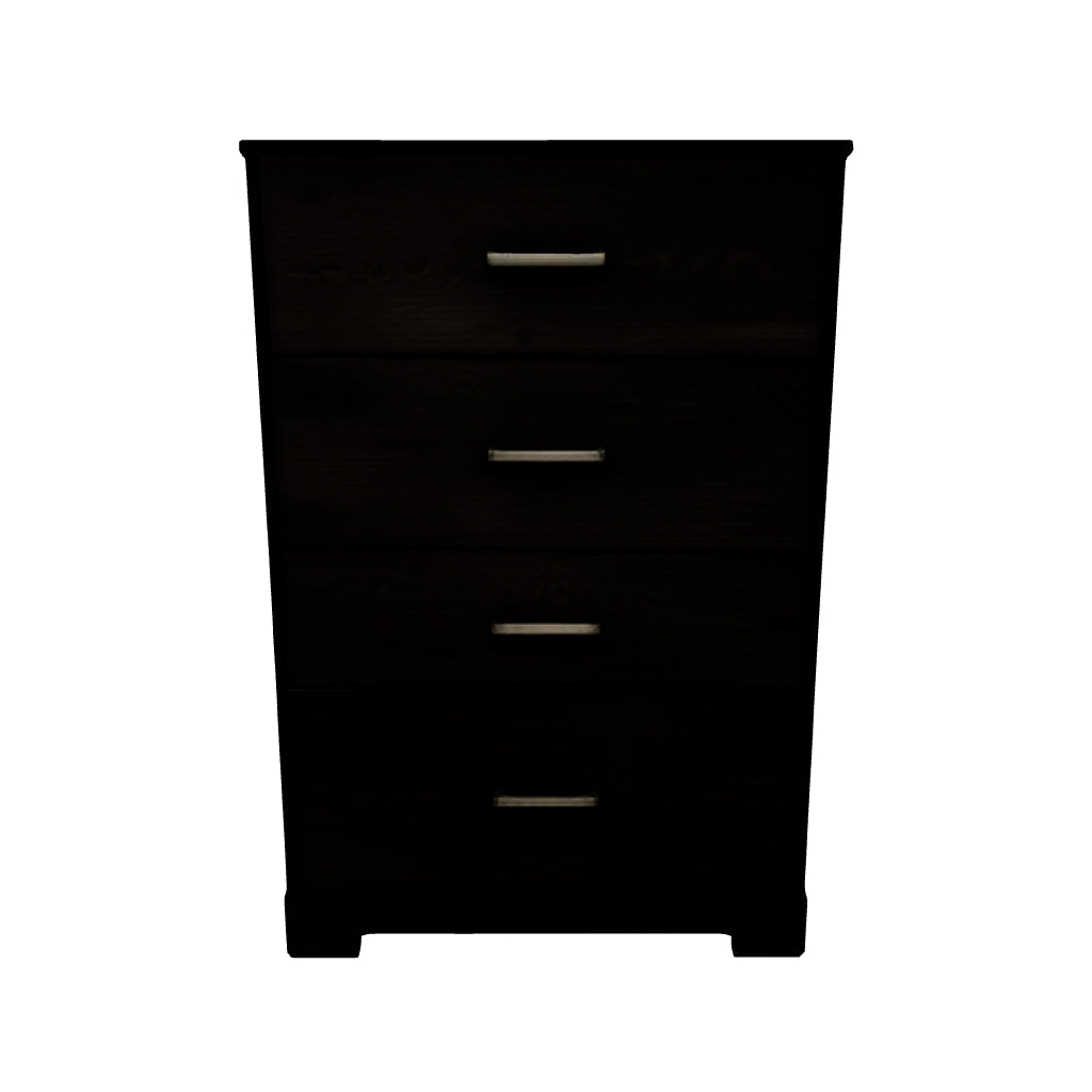With its clean-lined look and modern attitude, this chest of drawers is a fresh style awakening. A warm charcoal hue over replicated oak grain easily complements other furniture finishes. Smooth drawer fronts with antiqued pewter-tone handles complete the aesthetic.