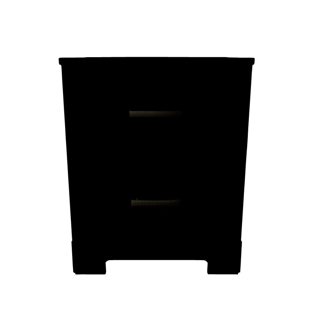 With its clean-lined look and modern attitude, this nightstand is a fresh style awakening. A warm charcoal hue over replicated oak grain easily complements other furniture finishes. Smooth drawer fronts with antiqued pewter-tone handles complete the aesthetic.
