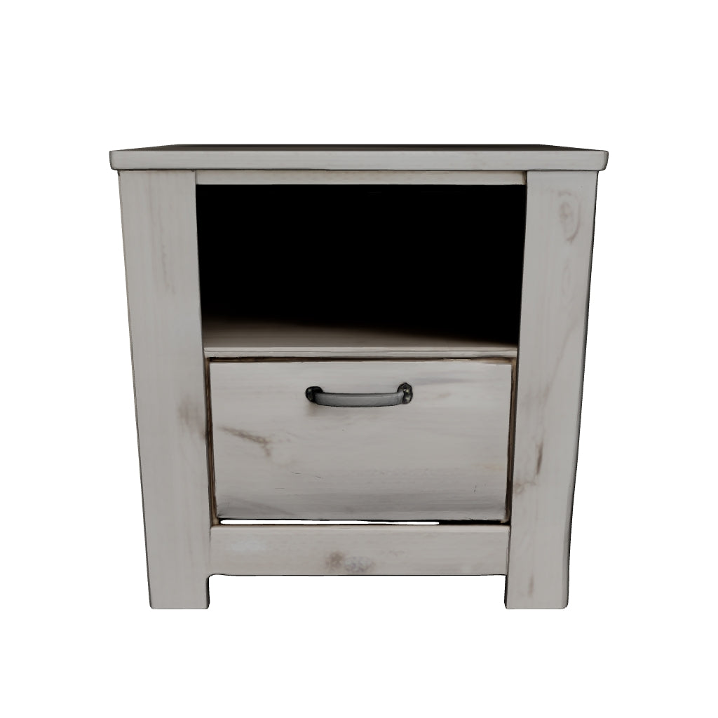 Your bedroom isn’t just a room. It’s a canvas. Express your farmhouse style with this nightstand. Wispy white finish over replicated oak wood grain brightens up the space with charm. Brushed nickel-tone handles with black edging finesse the piece with a bit of shine. Drawer is spacious and lined with faux linen laminate to hold your belongings with care. This clean-lined profile is the perfect authentic foundation for inviting decor.