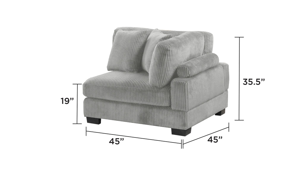 Sculpted for sophistication and comfort, the Corner Wedge makes a statement all on its own. Whether nestled into a quiet corner or styled as a bold accent piece, it delivers plush luxury wrapped in tactile elegance. Available in three refined colors gray, cream, and black, this chair complements a variety of aesthetics, from minimal to eclectic. Whether you're creating a conversation-ready corner, or simply indulging in solo comfort, the Bentley Corner Wedge brings depth and dimension to any space.