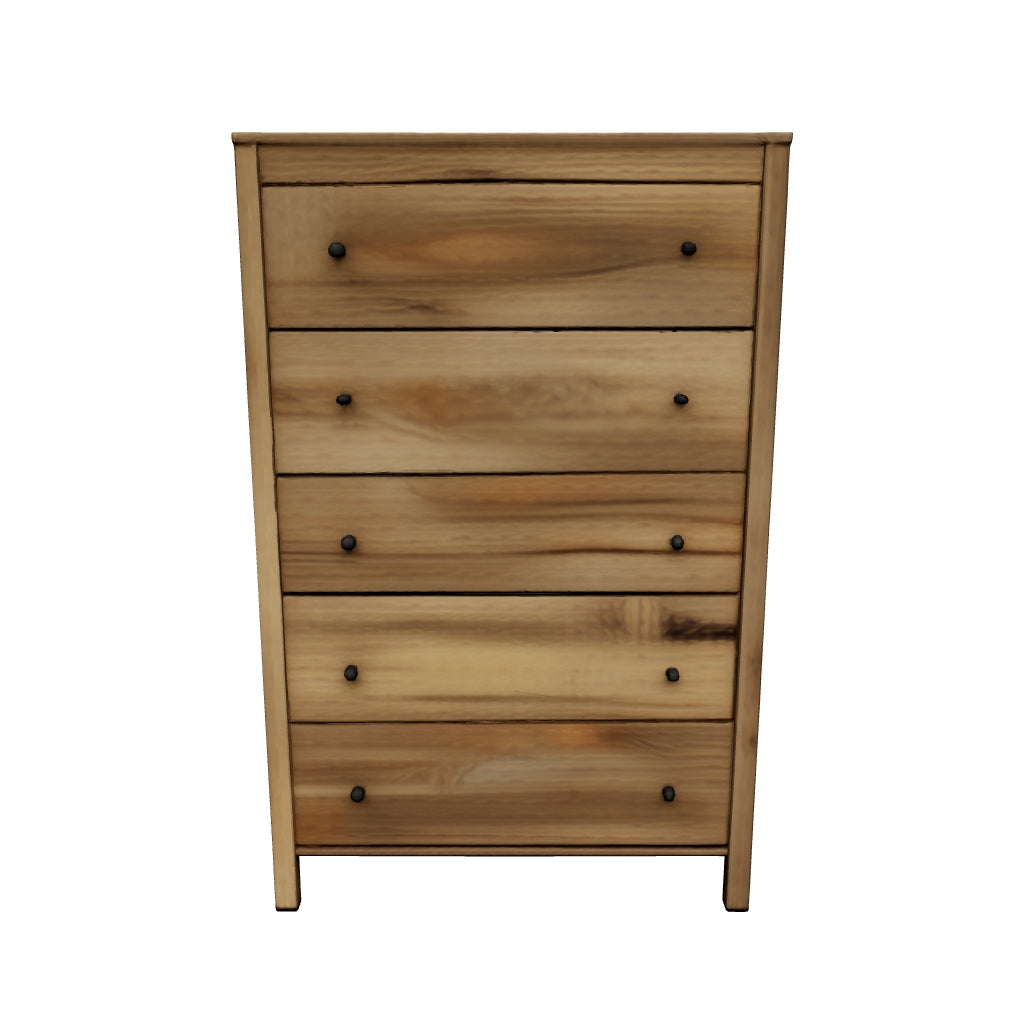 This chest of drawers puts the dream of a casual bedroom retreat beautifully within reach. A warm light brown finish over replicated hickory grain exudes a homey vibe. The smooth-gliding drawers are packed with storage possibilities. It’s a simply relaxed way to achieve the look you want to wake up to every morning.