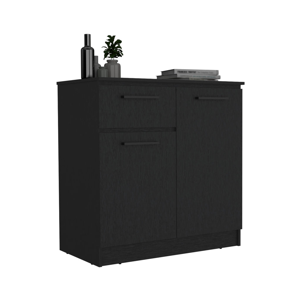 - The dresser features an ample single drawer and two-door cabinets with matching handles, providing plenty of storage space for your clothing, linens, or other personal belongings.