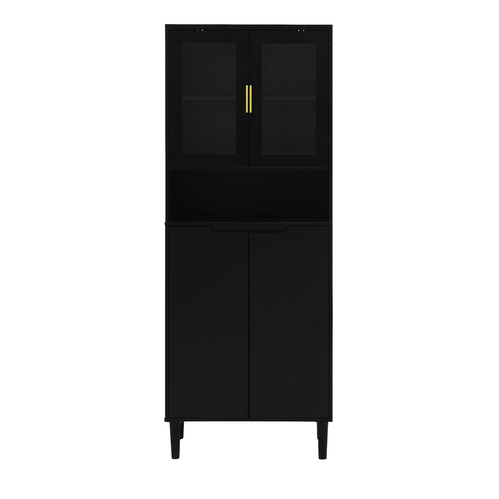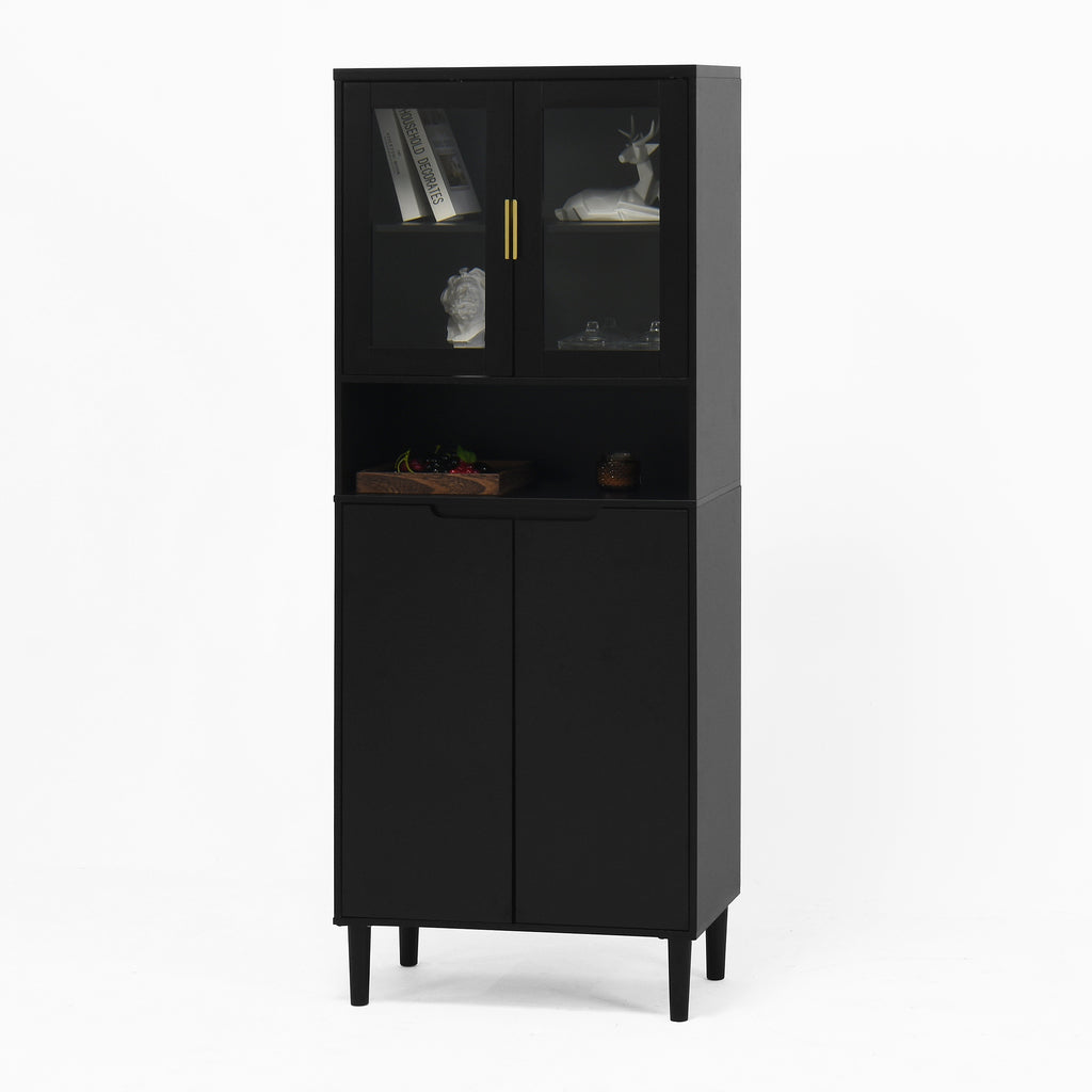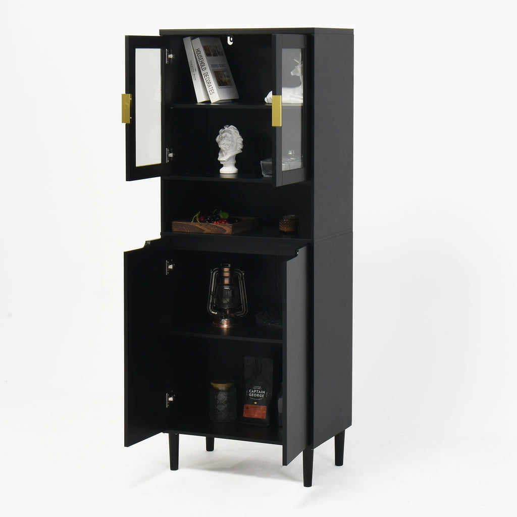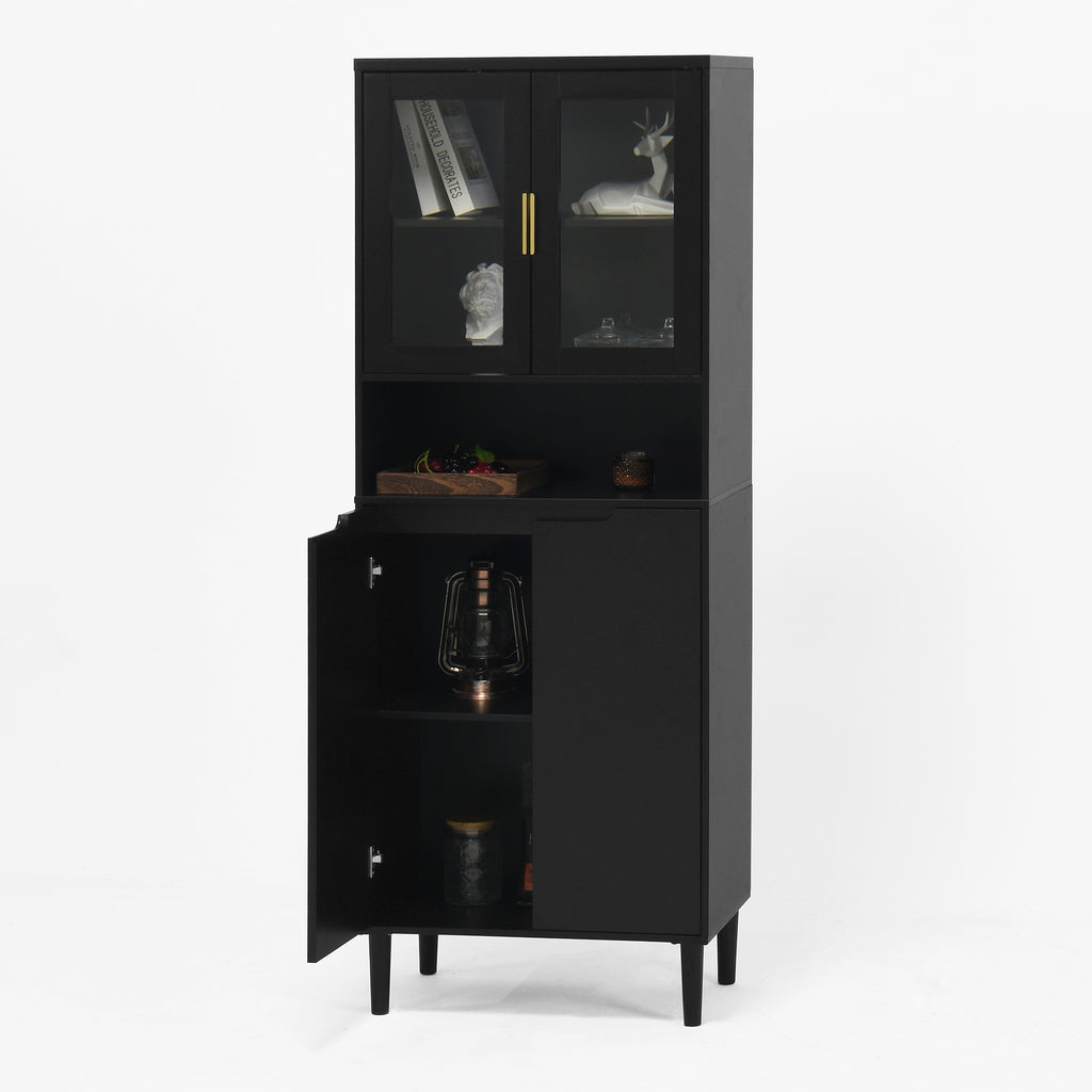 - With its elegant yet chic appearance and classified practical design, this black cabinet is suitable for various places: living room, kitchen pantry, bathroom, office, entryway, or any corner, even as buffet cabinet at dining room. Moreover, the top storage cabinet is equipped with two glass doors, allowing it to be used as a filing cabinet, display cabinet, or bookcase in a home office.