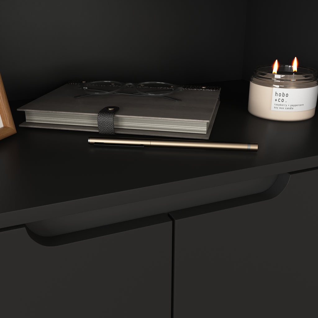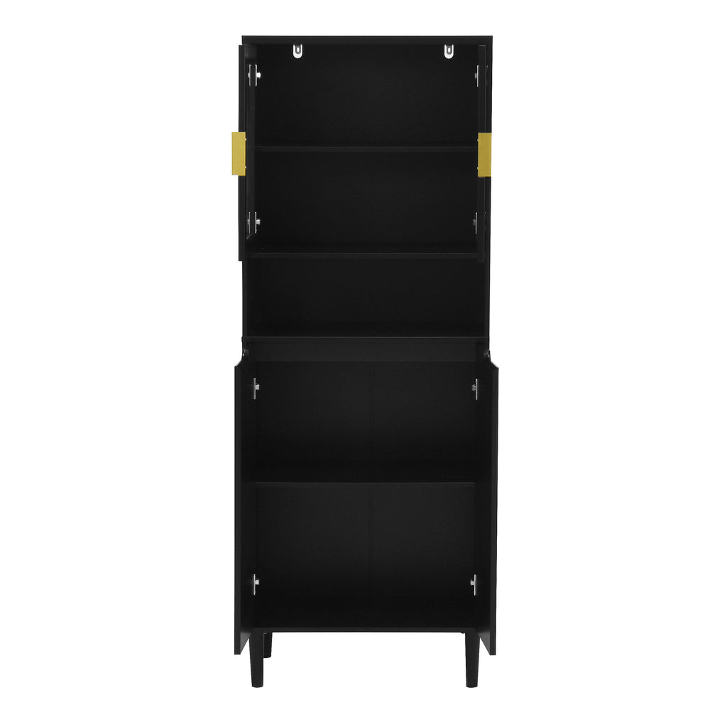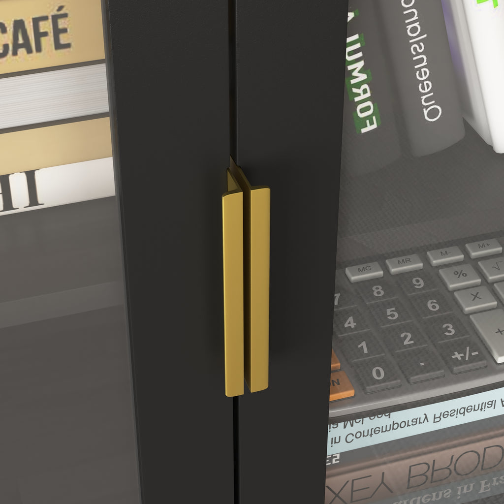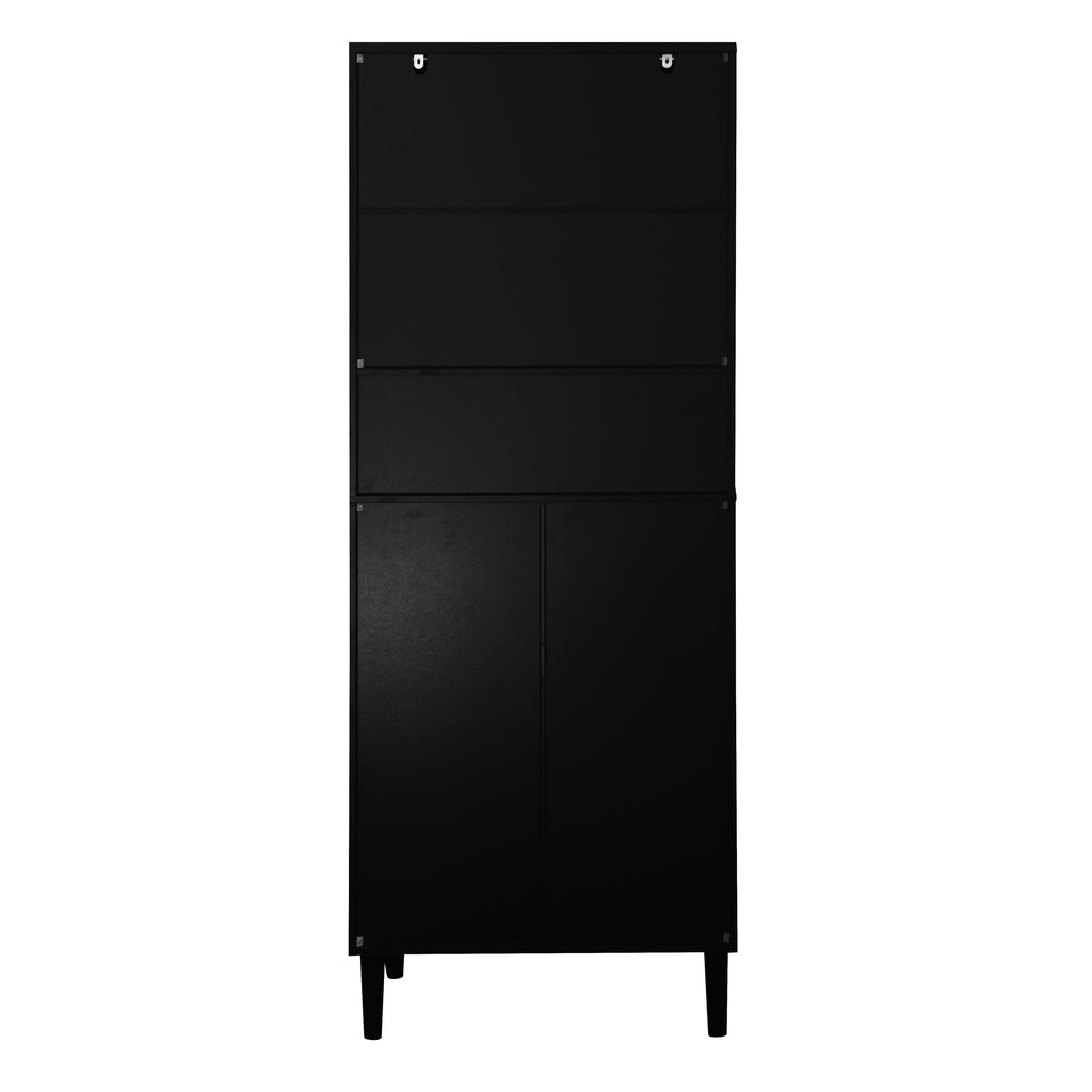 - With its elegant yet chic appearance and classified practical design, this black cabinet is suitable for various places: living room, kitchen pantry, bathroom, office, entryway, or any corner, even as buffet cabinet at dining room. Moreover, the top storage cabinet is equipped with two glass doors, allowing it to be used as a filing cabinet, display cabinet, or bookcase in a home office.