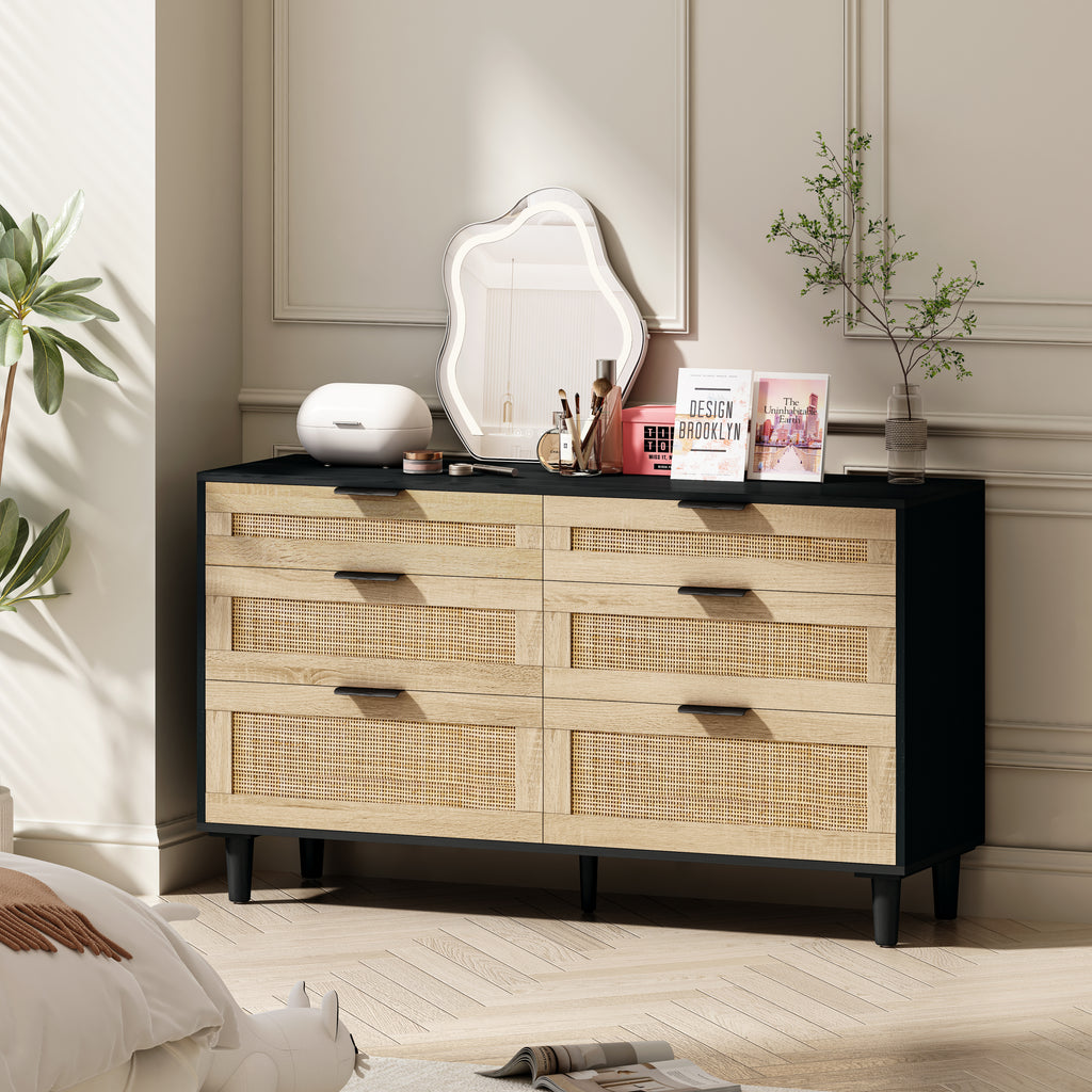 - Sufficient storage space:This dresser is functionally designed to meet a variety of storage needs. With 6 deep drawers of different sizes, the rattan dresser provides ample storage space for your daily use and keeps you organized. In addition, the smooth tabletop is the ideal place to display your favorite plants, pictures and decorative items.