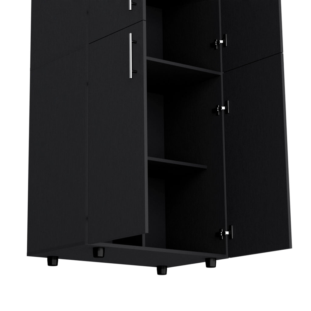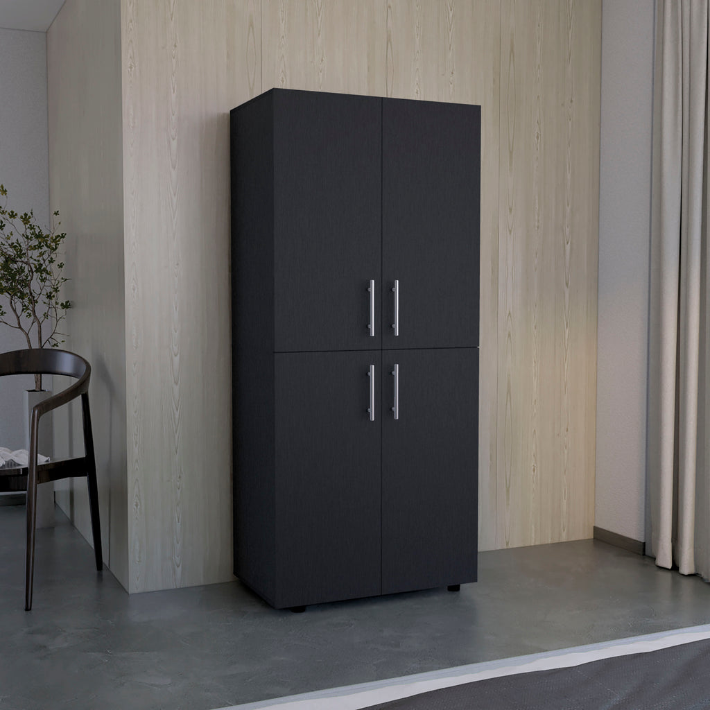 - The wardrobe has a sleek black finish that gives it a modern and sophisticated look. This color is versatile and can easily match a variety of décor styles.