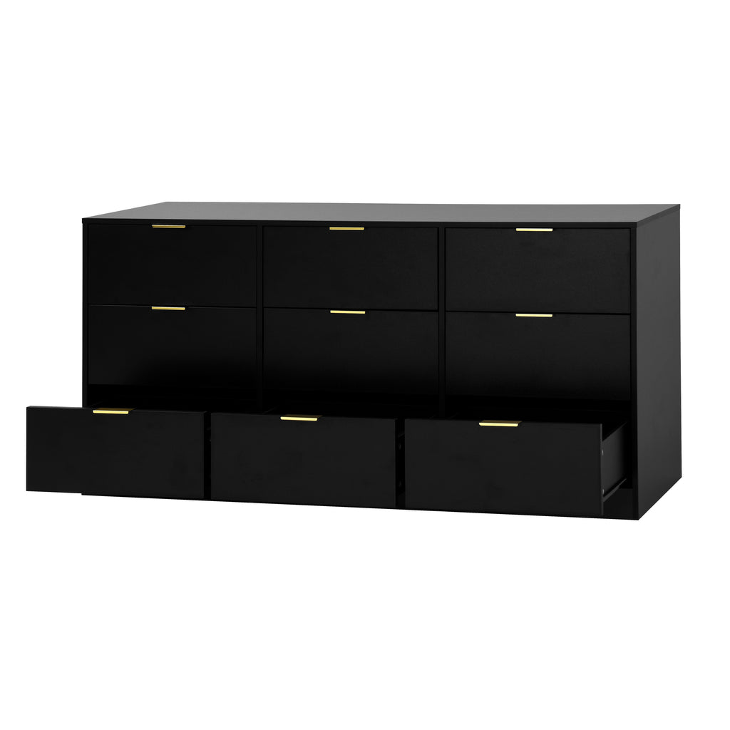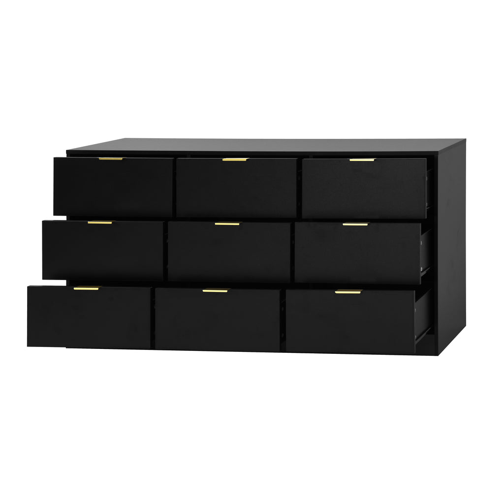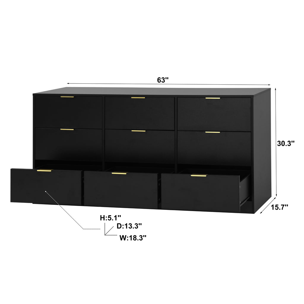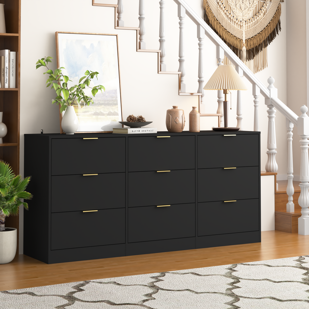 - Modern 9 Drawer Dressers: This large black chest of drawers with golden handles has a classic, simple design fit well in any decor style, creating a spacious and versatile look for your room