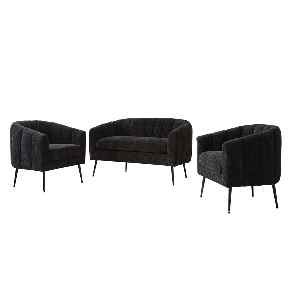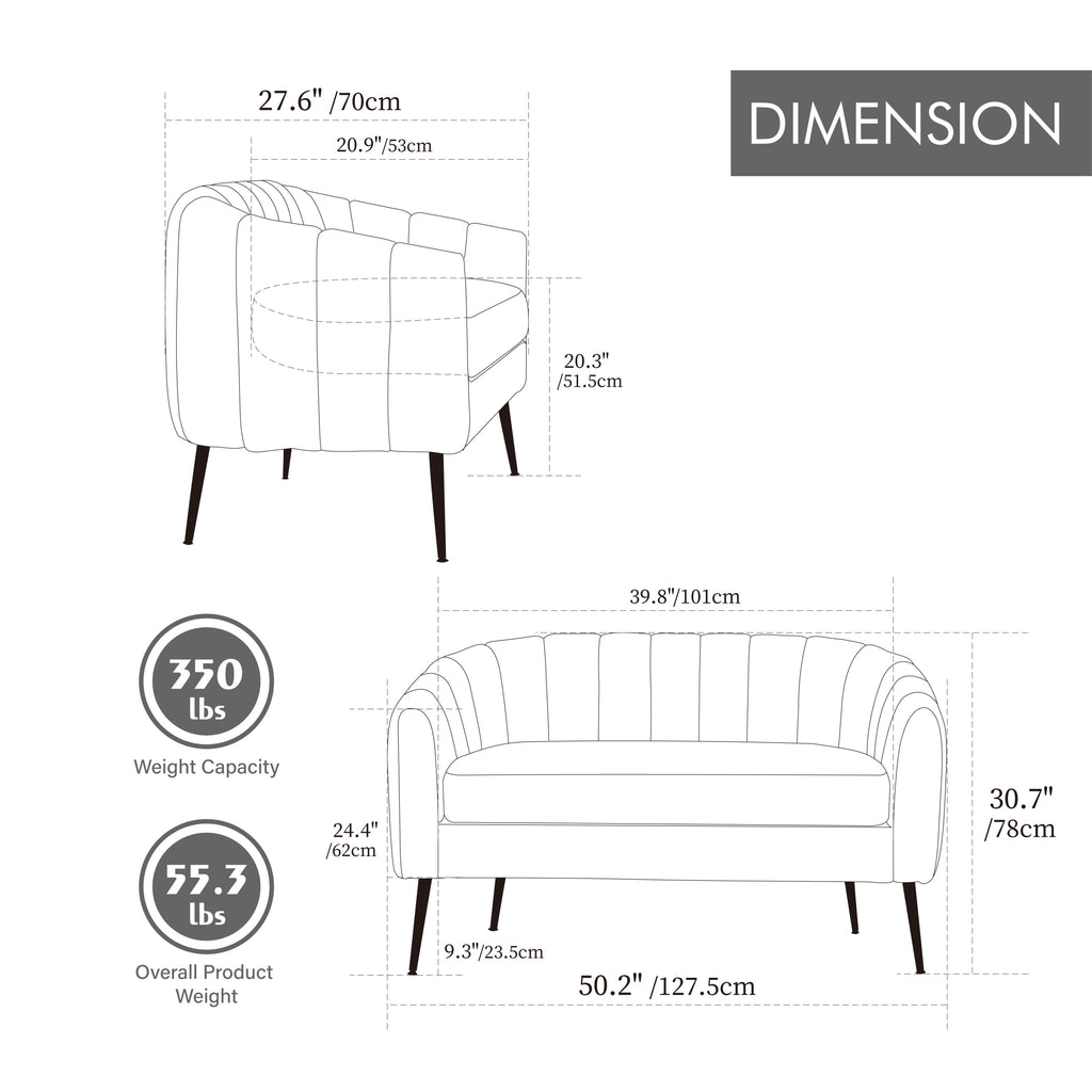 - Ergonomic Comfort for Relaxation – The loveseat and chair are designed with channel tufted and angled armrests to provide a comfortable sitting experience. Sweeping curves and structured detail make this a worthy focal point in the modern home.