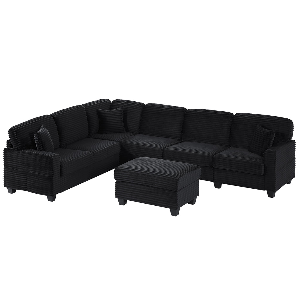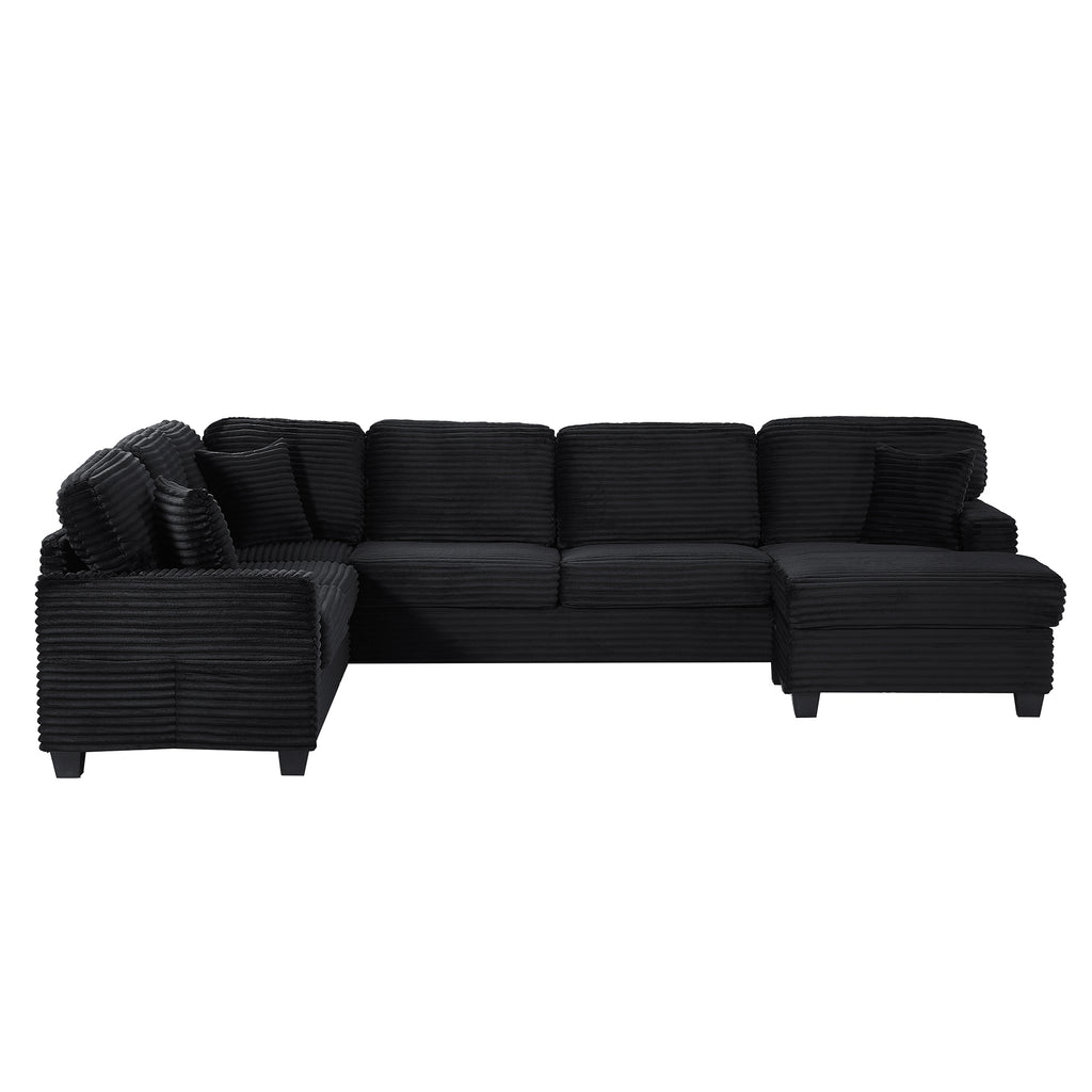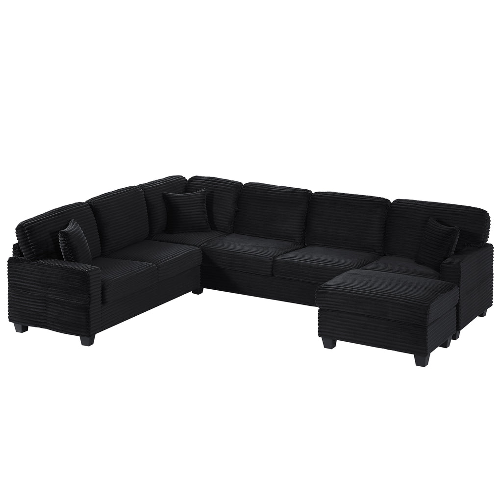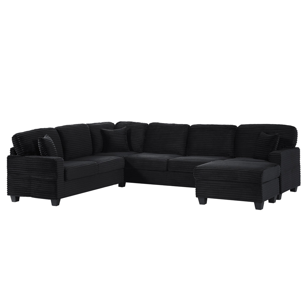 This modular sectional sofa combines versatile functionality with cozy style. Easily transformable into L-shaped or U-shaped configurations, it adapts to any living space or occasion. Upholstered in soft, ribbed corduroy, it offers both comfort and durability. Thoughtful details like built-in armrest storage pockets and matching throw pillows enhance convenience and visual appeal, making it the perfect blend of comfort, practicality, and modern design.