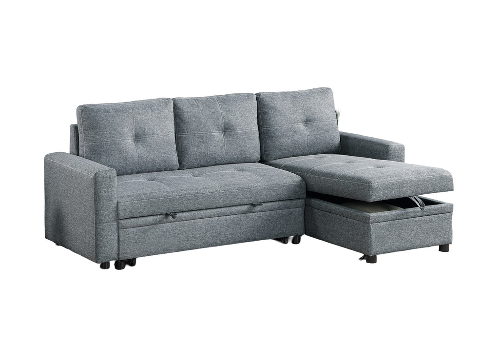 Whether you're lounging with a good book or hosting friends, this Convertible Sectional ensures a seating experience like no other. Enjoy the flexibility of arranging your sectional to suit your space with a reversible chaise that can be placed on either side. Plus, make the most of the hidden storage compartment – perfect for keeping your living room clutter-free. Our sectional transforms into a cozy bed, providing a comfortable sleeping solution for guests or those lazy movie nights.