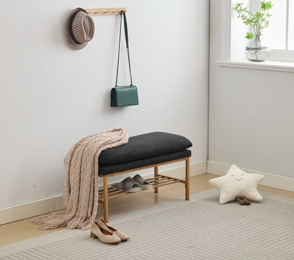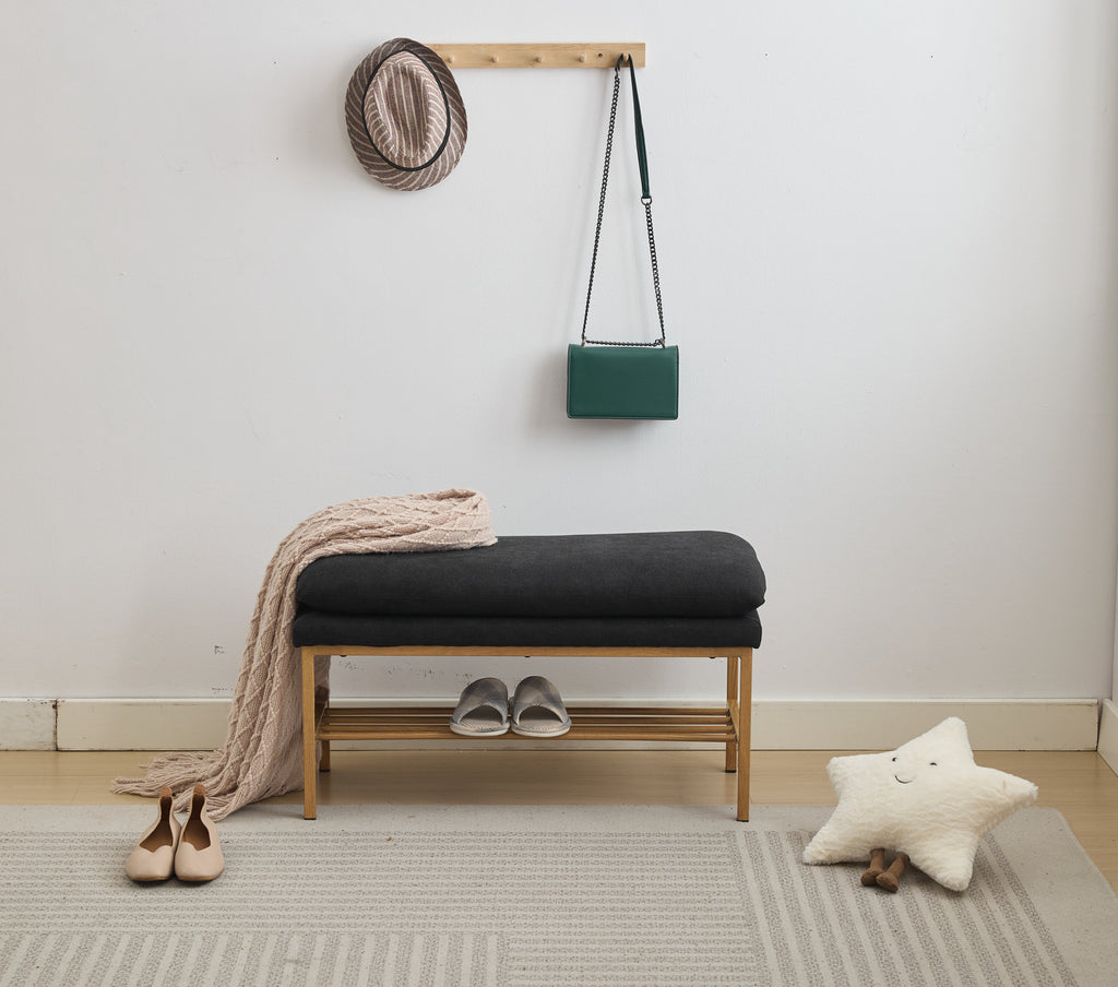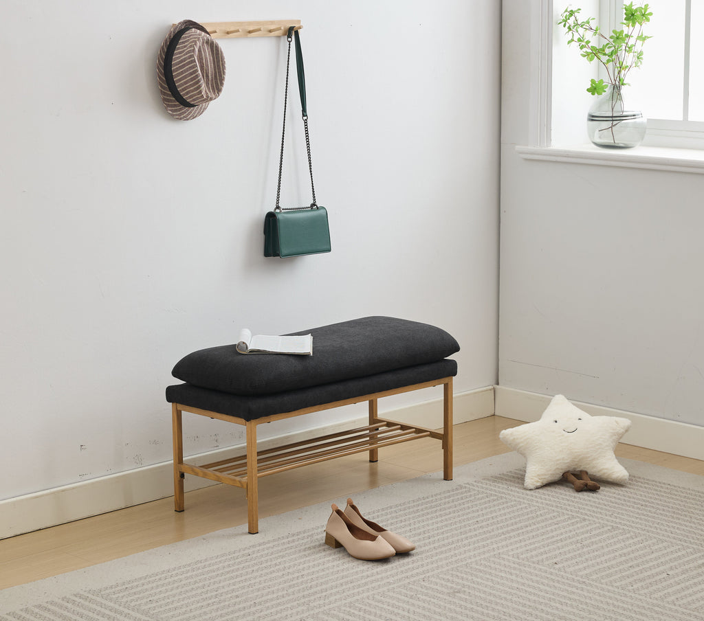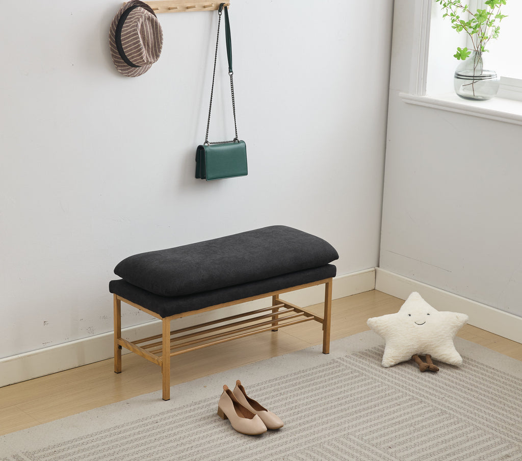 - Sturdy and Comfortable: Generously padded with high-density sponge, upholstered bench with high-density seat foam provides a soft but supportive seat; The metal feet highlight the sturdiness of this ottoman bench