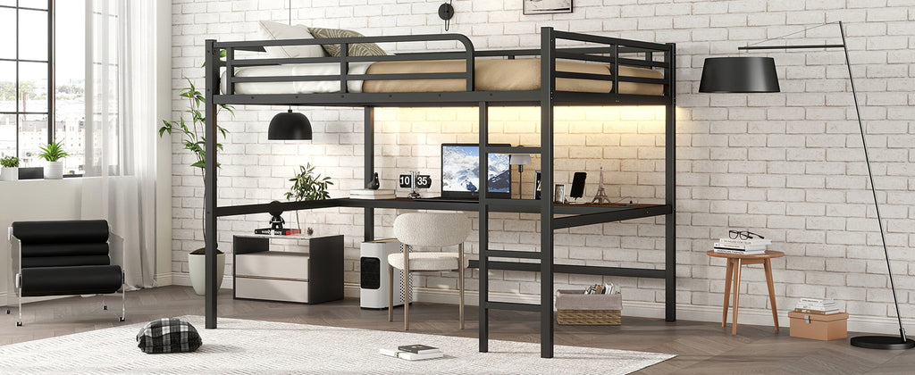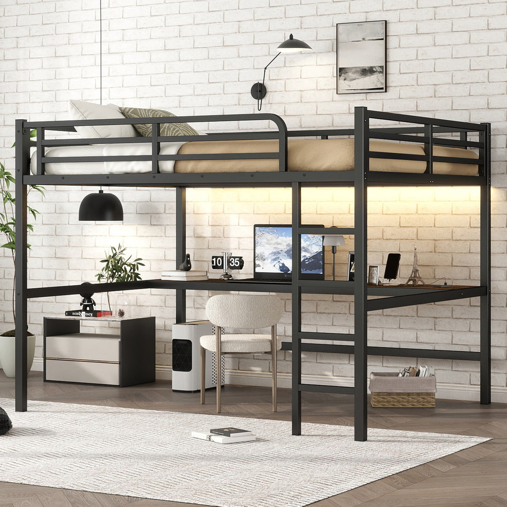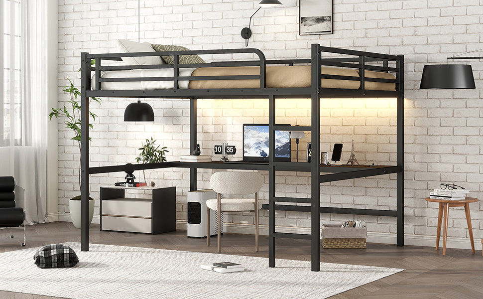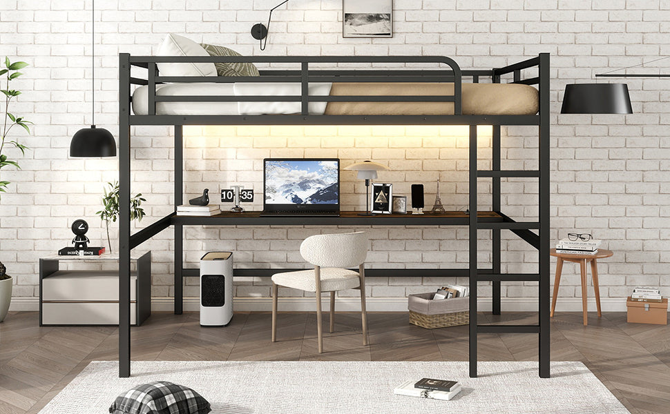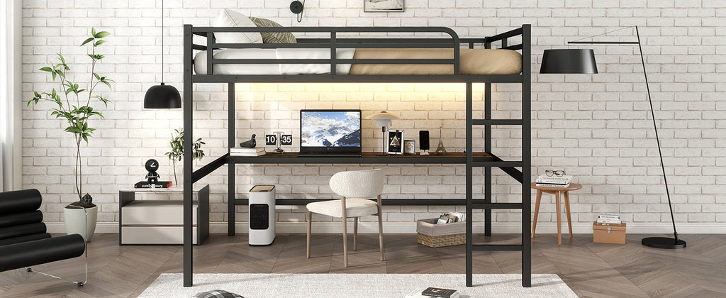 - [Sturdy Metal Frame] Made of solid metal frame, the loft bed is durable and reliable for you bedroom.All four sides of the upper bed are equipped with protective guardrails to prevent little ones from accidental falls to keep them safe and secure during play or sleep.