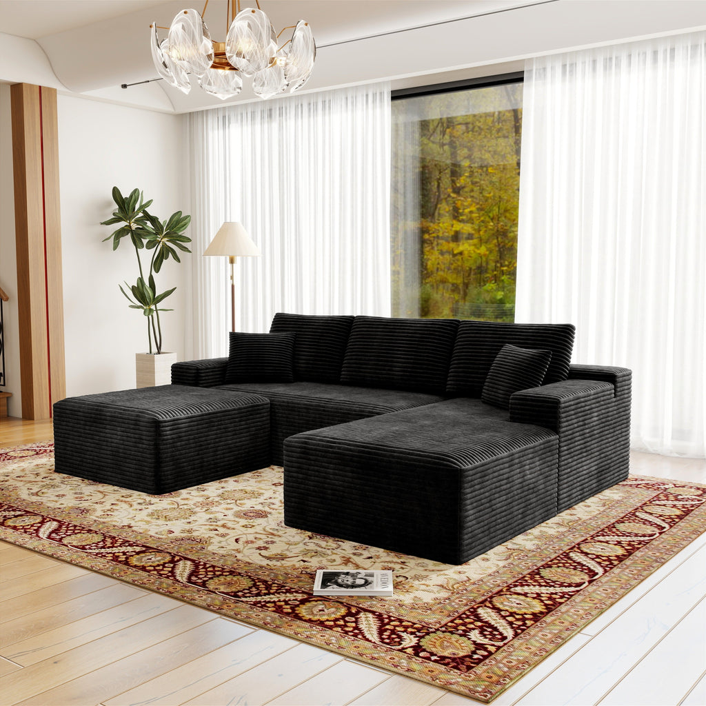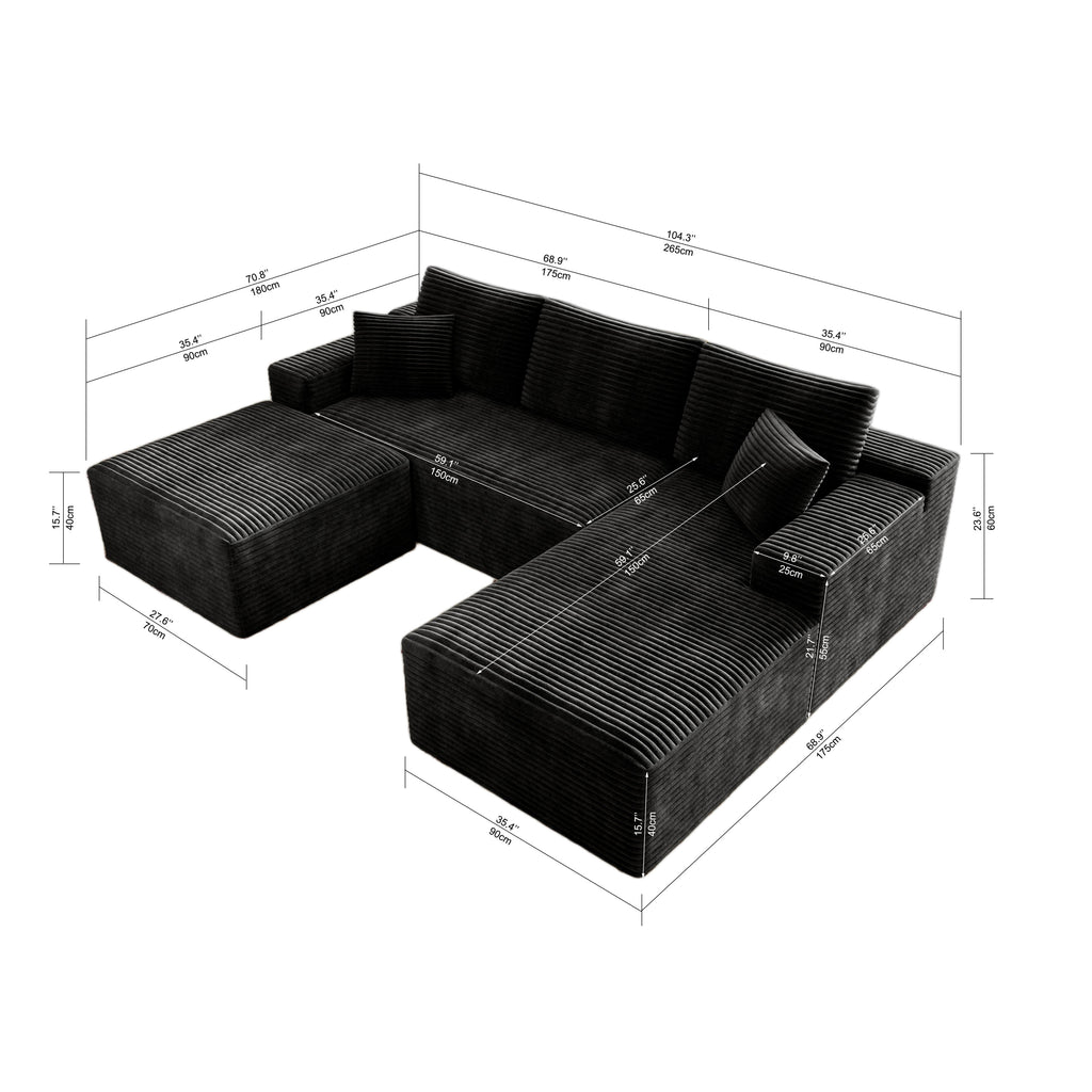 - Modular Sectional Sofa:This sectional sofa featuring a sleek design, clean lines, and high-quality plush corduroy Fabric,This sectional set maximizes space when placed against a wall,this corner sofa effortlessly adds a timeless and sophisticated touch to your home. Designed to be the focal point of attention, it's an ideal choice for elevating the ambiance of living rooms, apartments, and bedrooms.