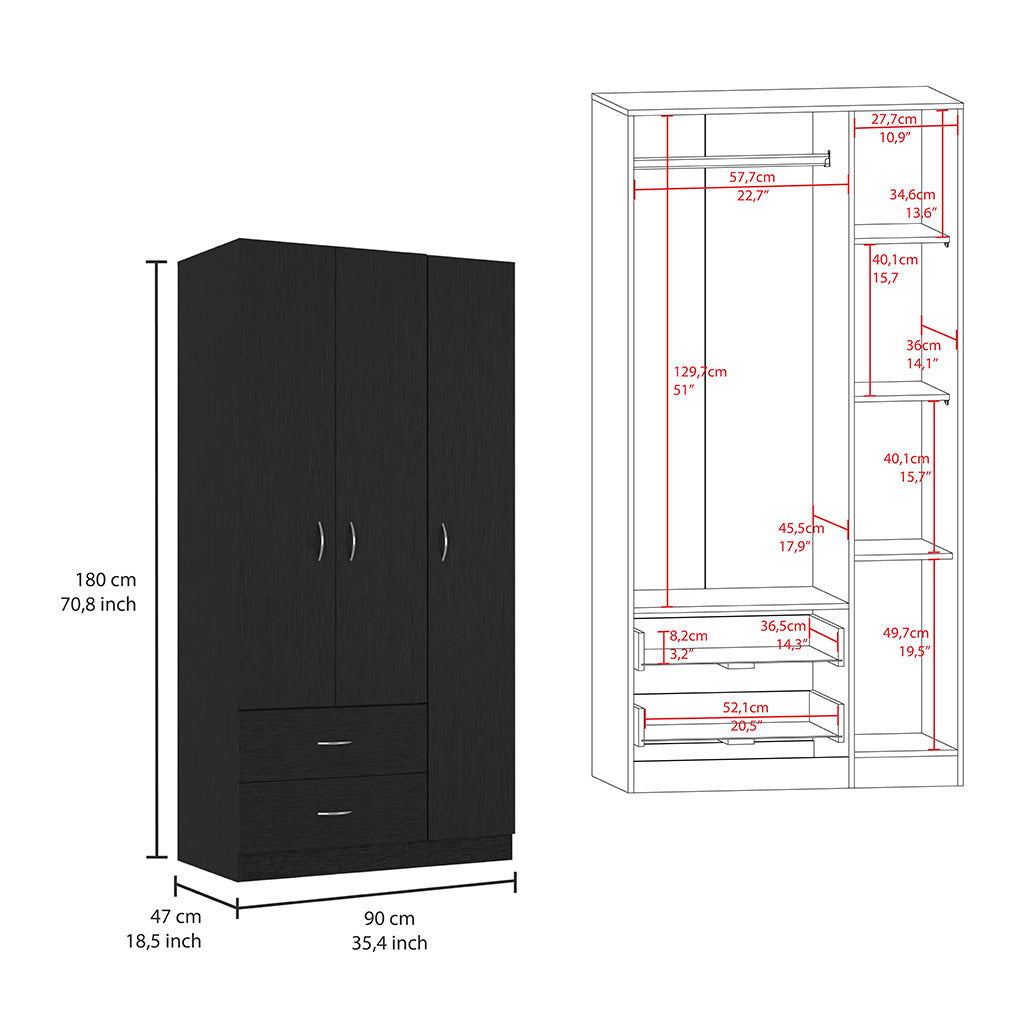 - Double Door Cabinet with Clothing Rod included (51'H x 22.7'W)