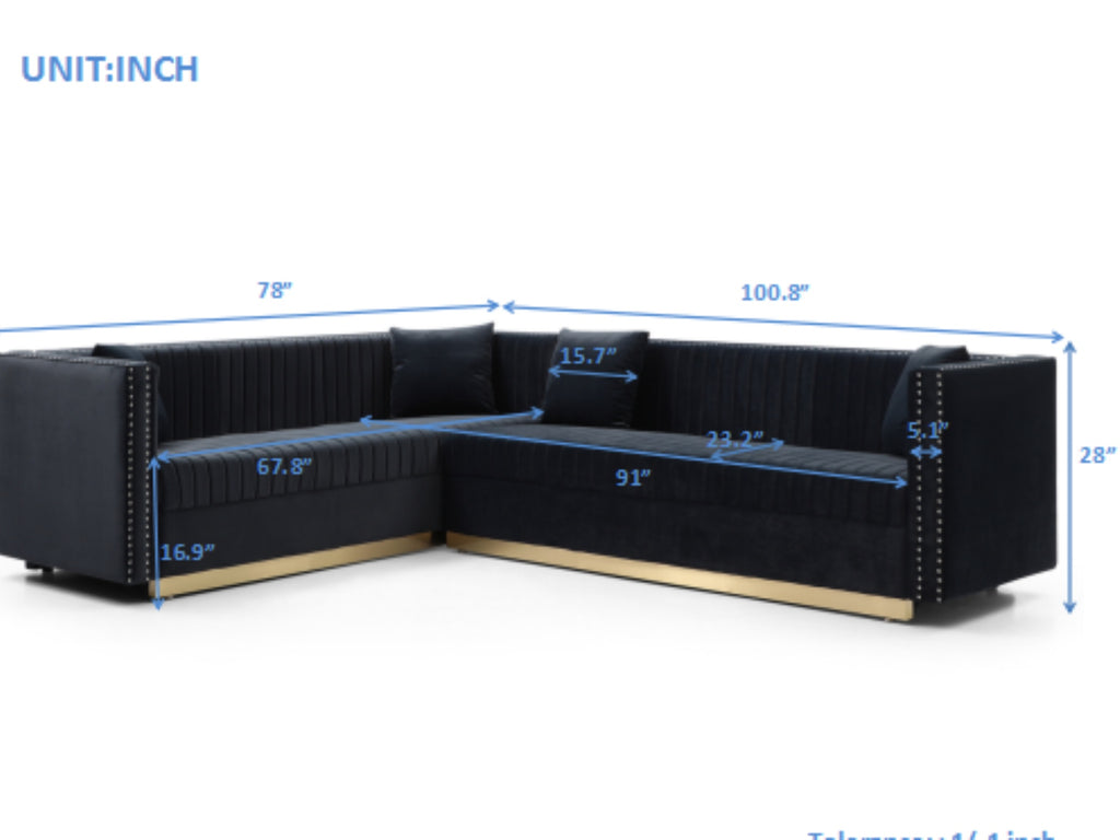 Contemporary Vertical Channel Tufted Velvet Sectional Sofa Modern Upholstered Corner Couch for Living Room Apartment with 4 pillows,Black
