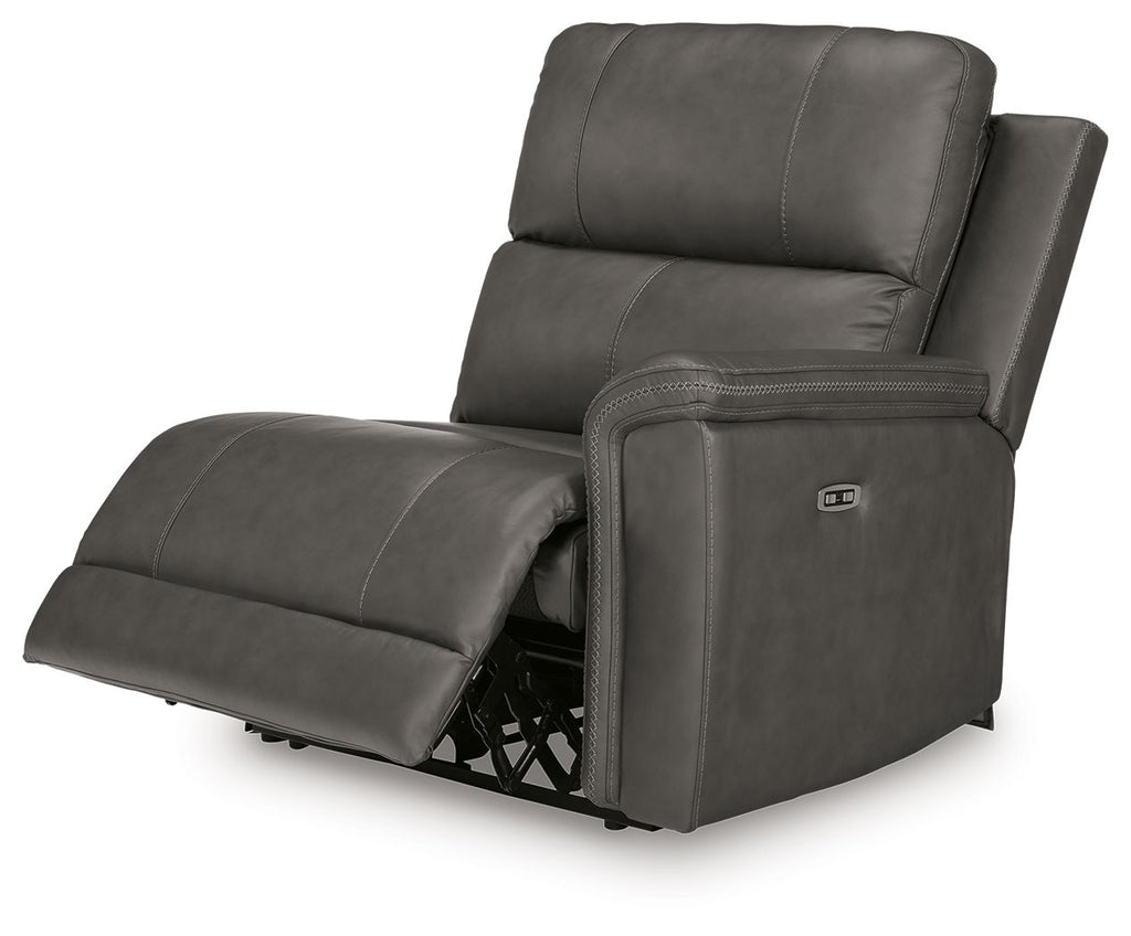 This right-arm facing power recliner is made with a combination of 100% top grain leather and faux leather upholstery. Pairs with other items in the series to make a sectional.