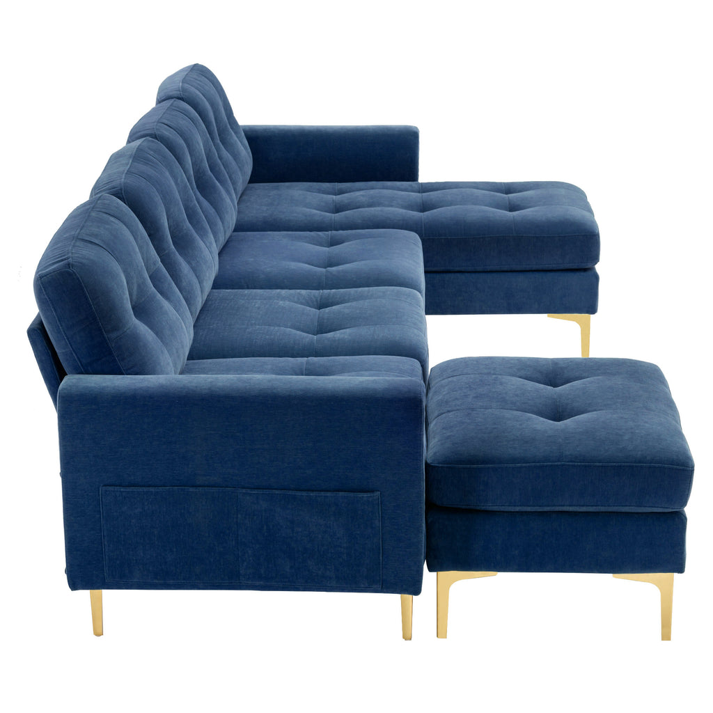 - Durable and Sturdy - Our sectional sofa is built on a solid plywood frame with high-density foam and embedded springs, offering exceptional comfort and support for hours of relaxation and lounging. It is constructed to withstand daily use and retain their shape and comfort for years to come. Golden metal legs perfectly support the entire sofa and can be used for many years to come.