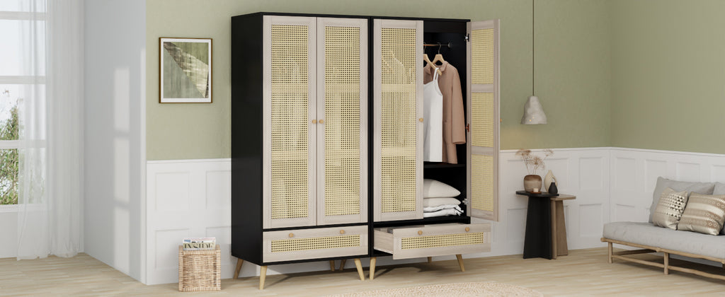 - [Stylish Rattan Design] – The Tic Tac Toe patterned rattan design on the doors adds a touch of retro charm to your space. This clean, geometric design brings a natural, organic vibe to your room, making it both visually striking and minimalist.
