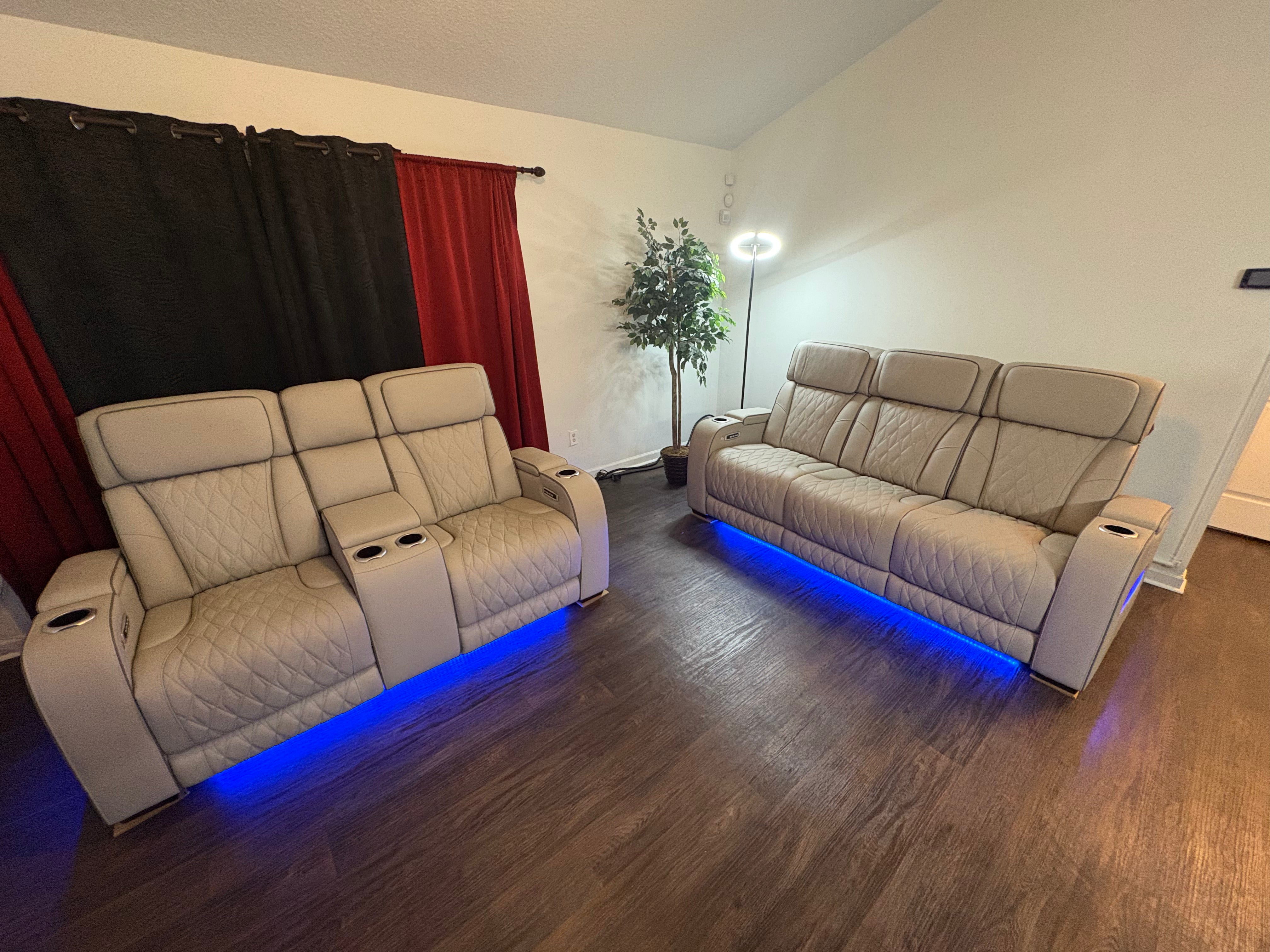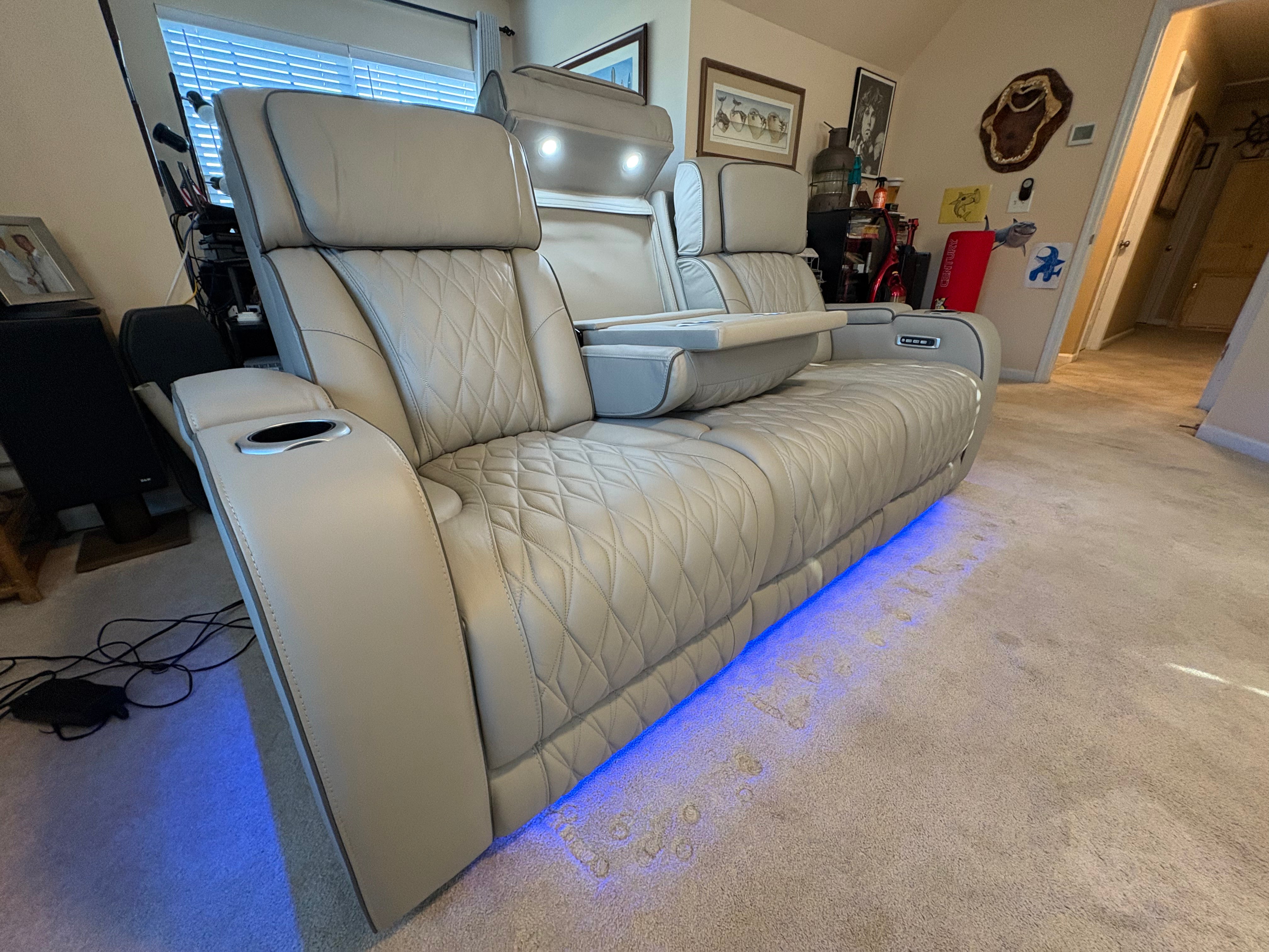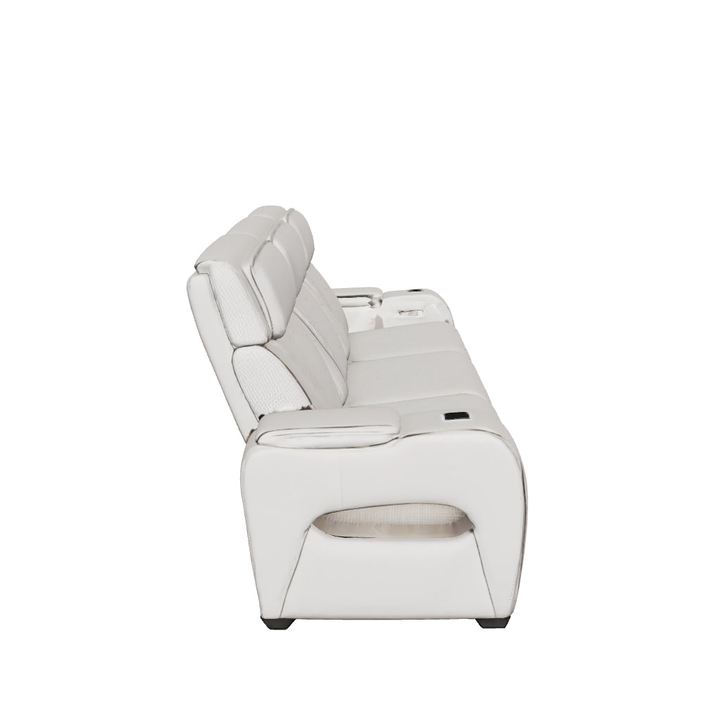 Ready to take your reclining experience to the next level? Then sit up and take notice. With this power reclining sofa, ultimate relaxation is at your fingertips. Experience the pure bliss of an air massage system and heated seats at the touch of a button. The center seat is crafted with a drop-down table with power/USB plug-ins and dual cup holders. Plus the luxurious diamond-stitched upholstery is easy on the eyes, adding elegance to any space.