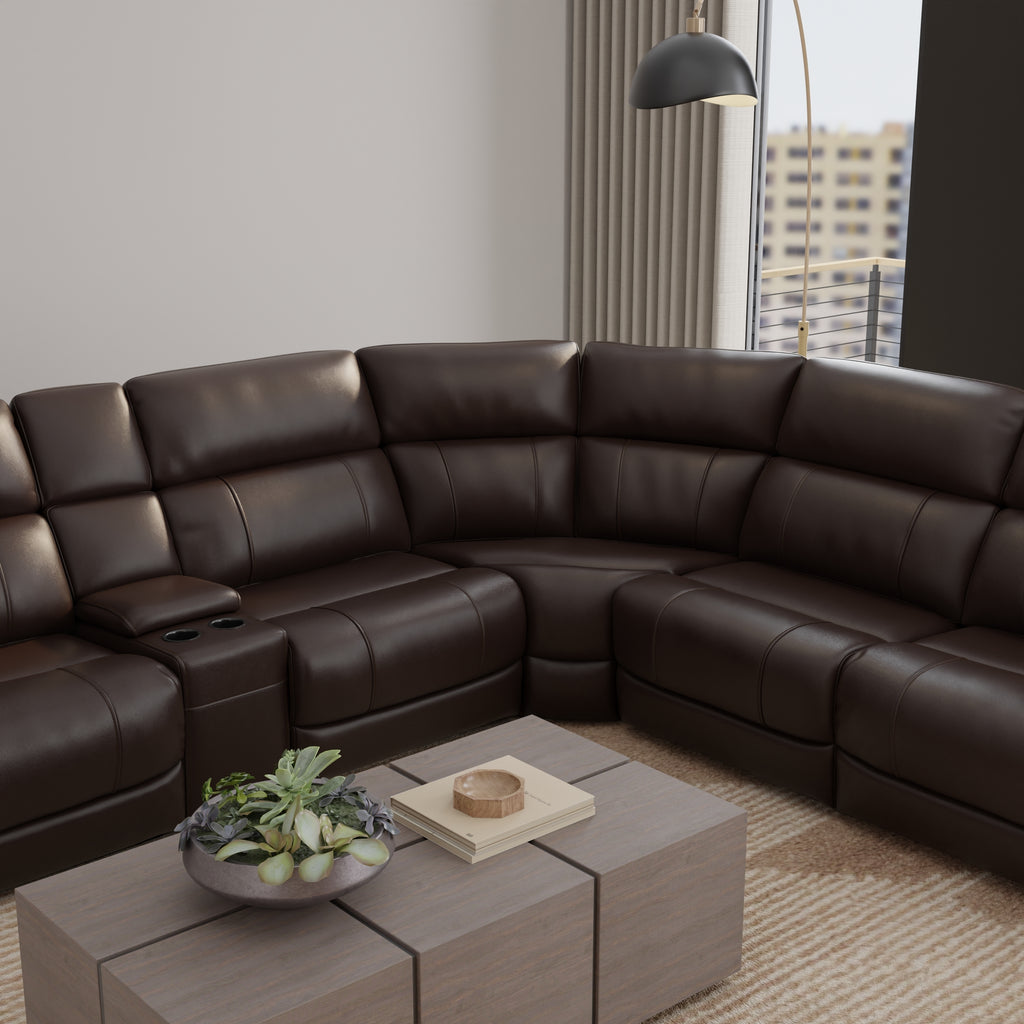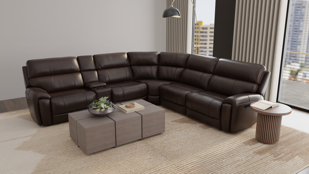 - Elevate your living space with the Global Home Leather Power Sectional — a modern blend of comfort, technology, and premium craftsmanship. Upholstered in supple top-grain leather, this sectional is designed for relaxation with power-adjustable headrests and footrests at your fingertips. Stay connected and powered up with integrated USB and USB-C ports on each armrest, plus additional charging ports in the multifunctional center console.