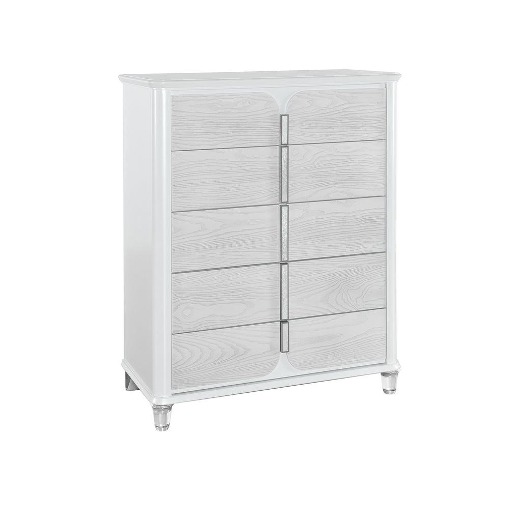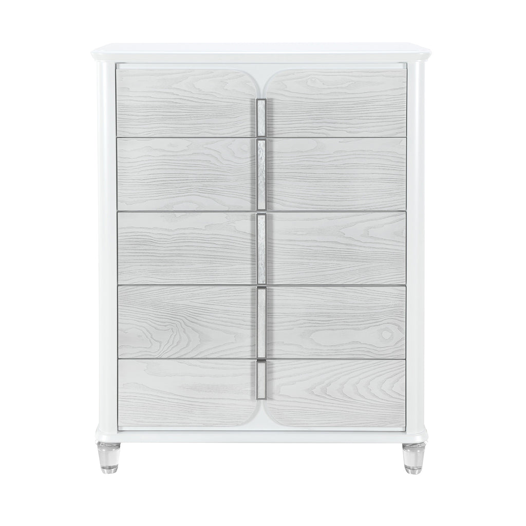 - WHITE UPHOLSTERYtEXTURED DRAWER FRONTS