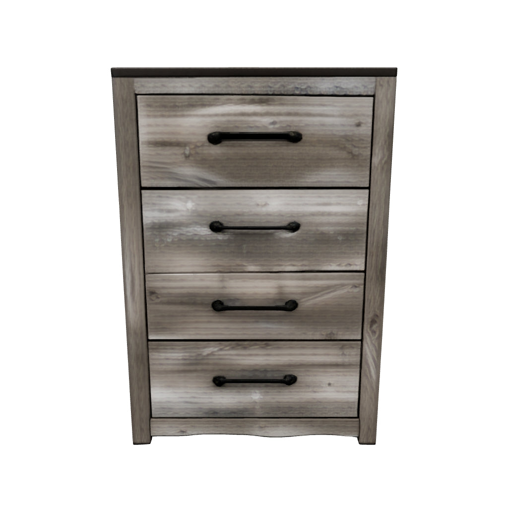 Alluring smoky gray hues create an ambiance that just feels right. This 4-drawer chest has a charming wood-like appeal enriched by a two-tone, textured look. Light neutral shades contrasted by a dark charcoal finish bring a refined yet relaxed feel to contemporary decor and a sense of serenity to your space.