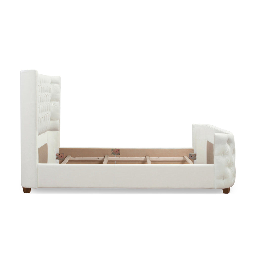 - Wingback shelter silhouette that wraps around for a luxurious, cozy bedroom vibe