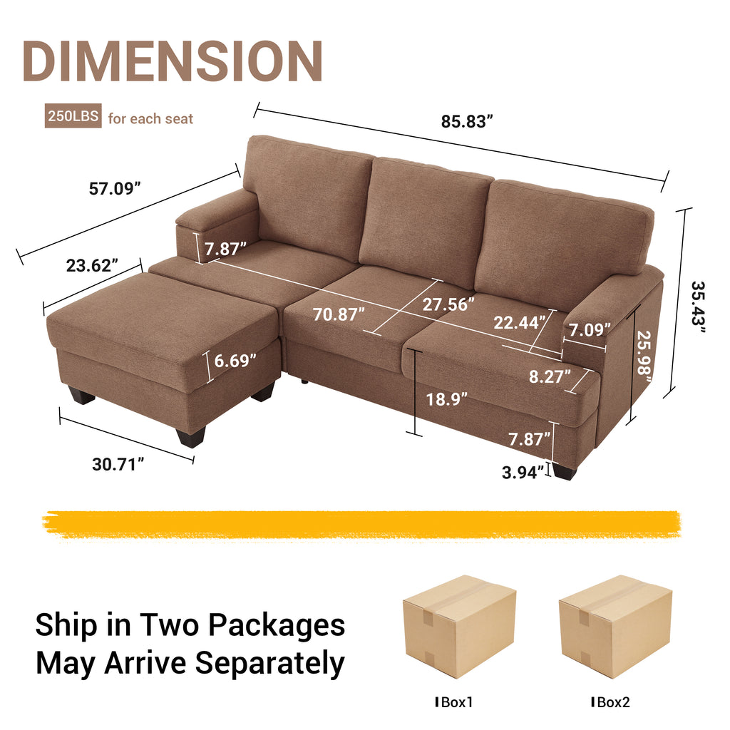 - Sturdy Wood Frame:You can jump on sofa freely.Our sectional sofa made of all solid wood.Compared to metal frame structures,is easier to assemble and provides greater stability.Each sofa seat can be support weight up to 250 lbs.