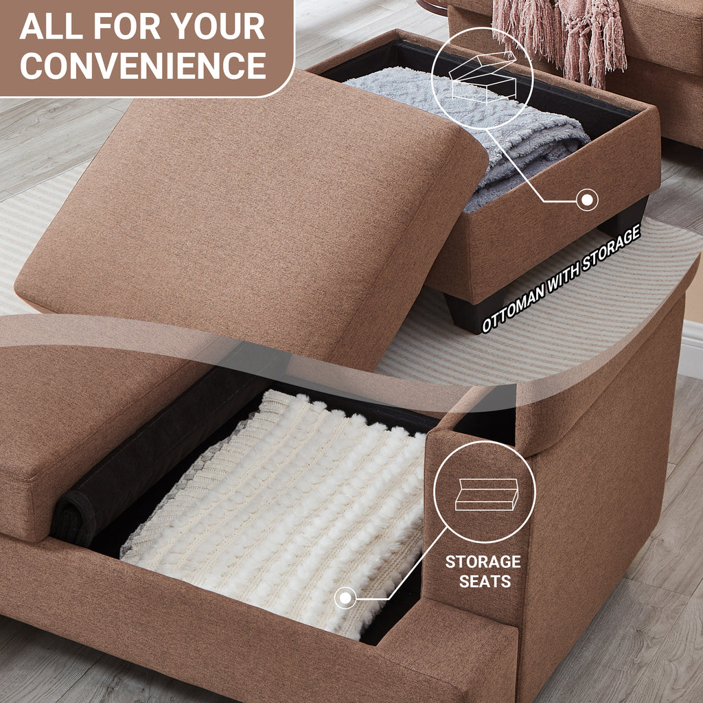 - Movable Ottoman:The ottoman can be a chaise,also a seat.And it’s spacious storage space, modern sofa store essentials or seasonal items within for convenient access at all times, keeping room organised.