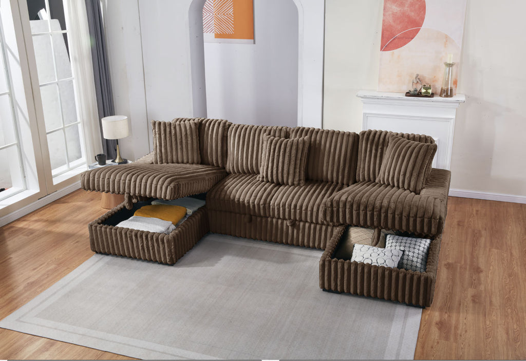 - Double built-in storage units integrated into the chaises, maximizing space utilization. Effortlessly organize cluttered items and maintain a tidy and appealing living area.