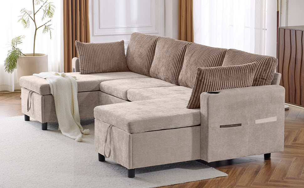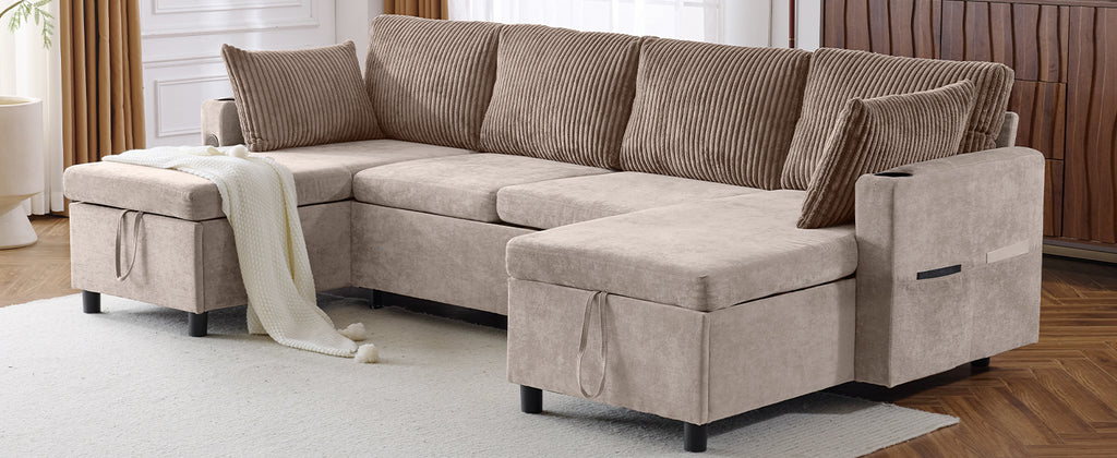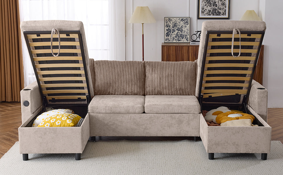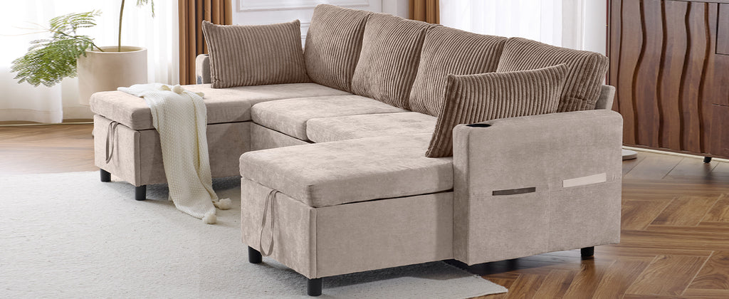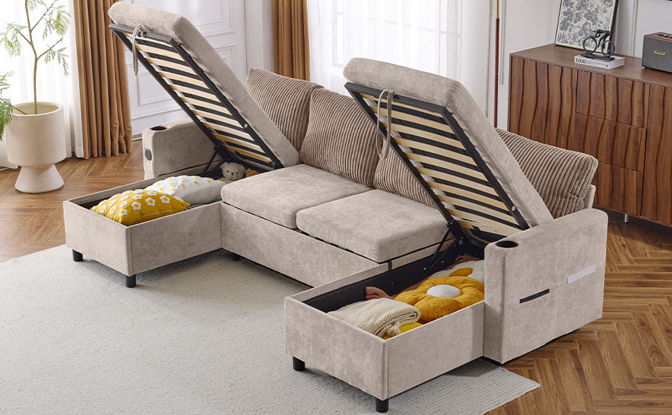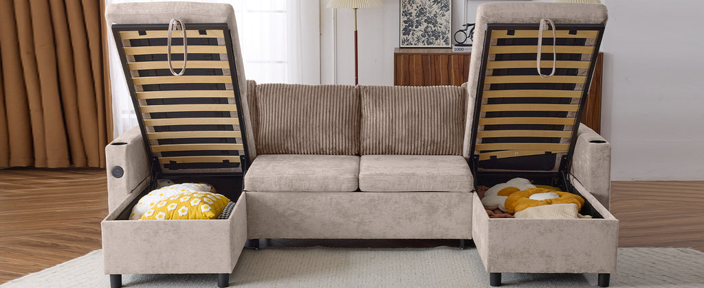 - Double Storage Chaise Lounges - Each of the two chaise lounges features additional storage space underneath, ideal for discreetly storing blankets, clothes, or toys, keeping your living room organized.
