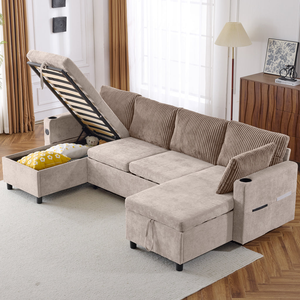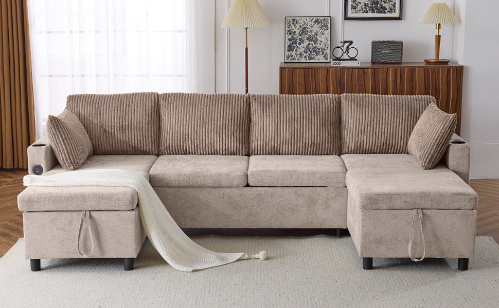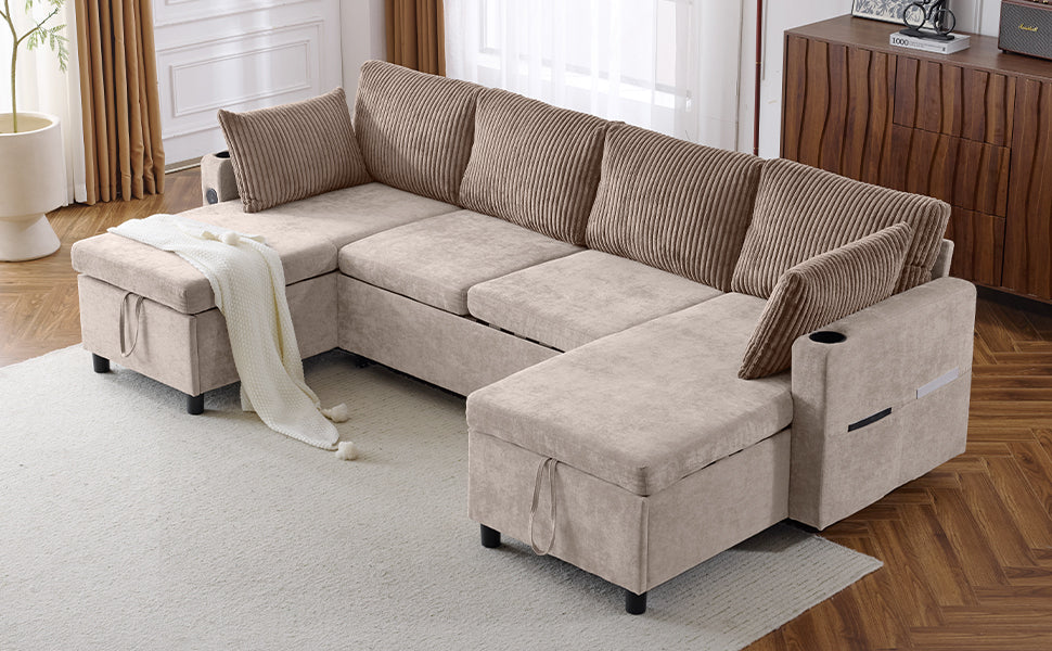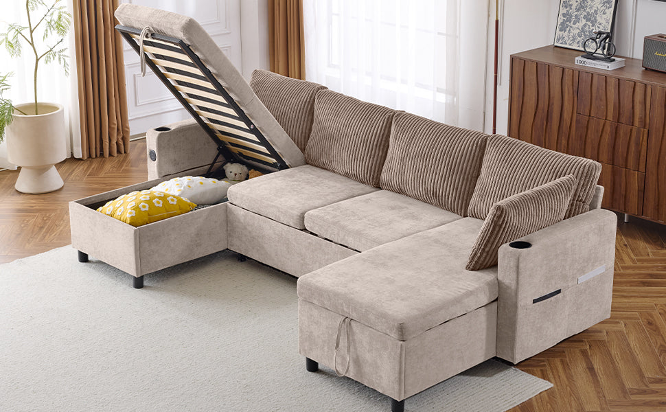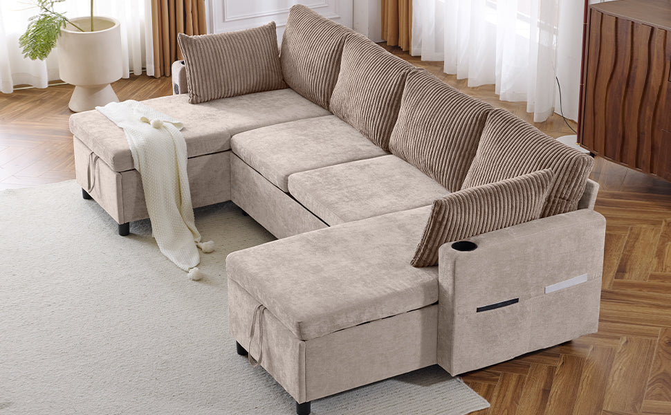 - Double Storage Chaise Lounges - Each of the two chaise lounges features additional storage space underneath, ideal for discreetly storing blankets, clothes, or toys, keeping your living room organized.