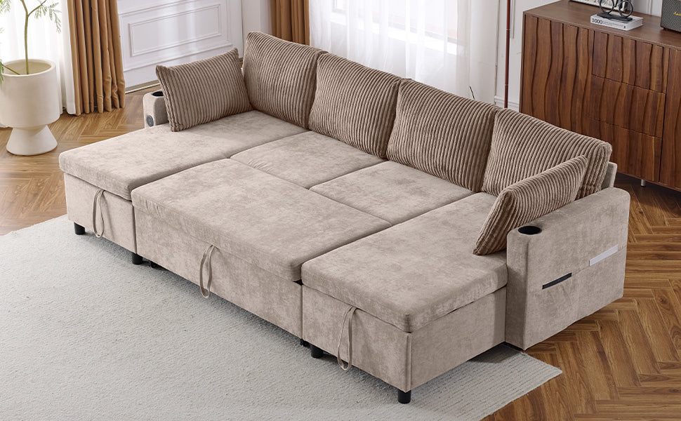 - Versatile Sofa Bed - This sectional sofa can be easily transformed into a U-shaped sofa or a pull-out bed in just seconds, making it perfect for accommodating visiting family and friends.